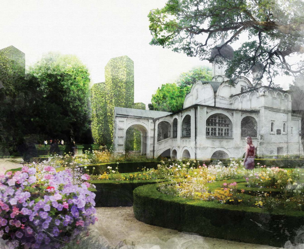 Понятие «спроектированной природы» включает четыре ландшафтные зоны - монастырские сады, луг, водная гладь, болото и березовый лес. А также - создание зимнего сада с развитой сервисной инфраструктурой, создание обзорной наземной дорожки и подвесной дороги. Они позволят посетителям парка познакомиться со «спроектированной природой», наряду с террасой для обзора, где растут традиционные растения аптекарских садов. Это место, откуда открываются лучшие панорамные виды на исторические достопримечательности Москвы. Это важный компонент, соединяющий городские кварталы с набережной Москвы-реки.