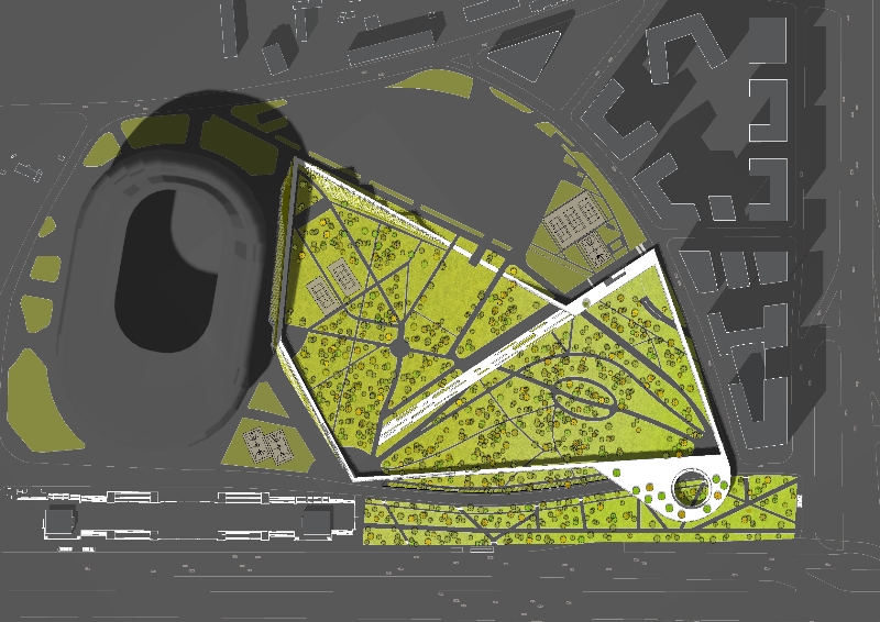 Команда Wowhaus, считает, что для комфортного существования парку необходимо три «сценария» жизни: парк во время массовых мероприятий на стадионе, транзитный путь пешеходов, зоны отдыха посетителей. Транзитная зона выделяется светом, на входе может быть установлен кафе-киоск, на главной площади перед фонтанами - кафе. Зоны отдыха находятся на наиболее озелененных частях парка. Самая проблемная зона - рядом с Ленинградским проспектом, поэтому ее архитекторы намерены огородить забором.