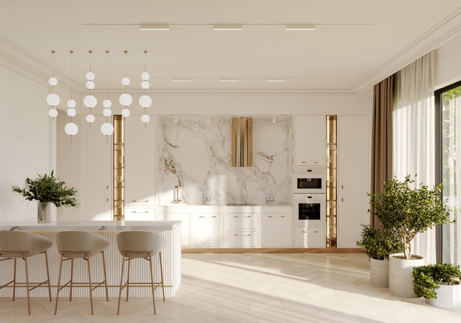 Далее следует проект Lion Gate. Резиденции в клубном доме спроектированы по канонам дворцовой архитектуры (Petit Trianon в Версале, особняк Musée Nissim-de-Camondo в Париже), в стиле французского классицизма.