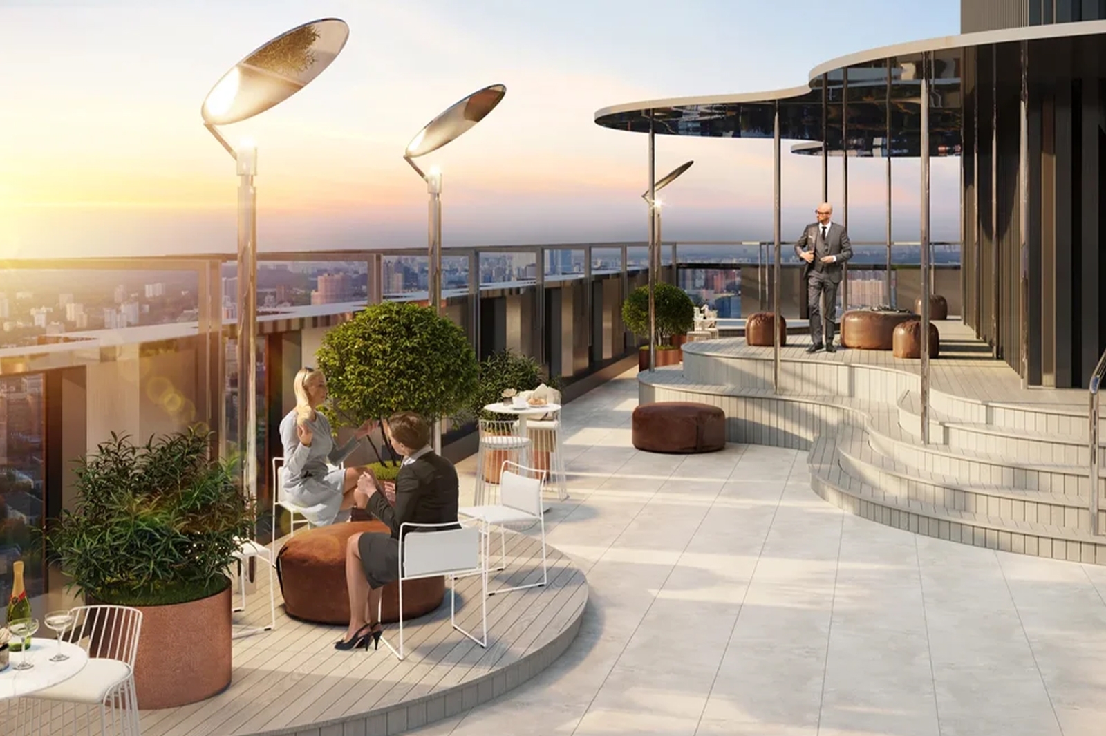 Обустроенное общественное пространство на высоте – это не только привлекательное место для съемок или ужина с красивым видом, но и удобное, многофункциональное пространство. Так, на террасах небоскребов Eniteo жители смогут заниматься йогой или пилатесом, встречаться с друзьями в уютной лаунж-зоне, оборудованной пуфами и кадками с живыми растениями, или просто работать за удобными столиками с вдохновляющим видом на город.