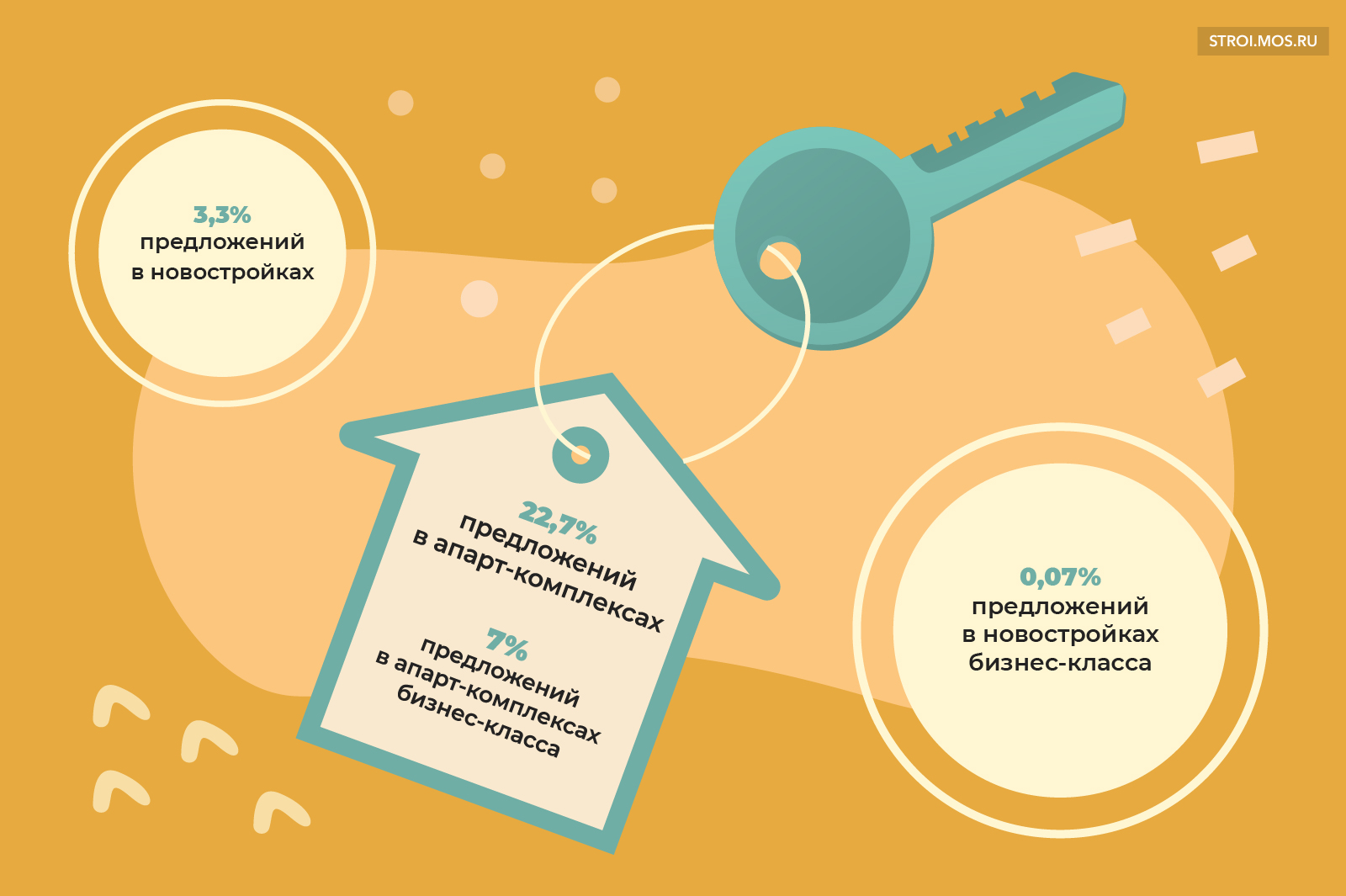 В новостройках бизнес-класса «старой» Москвы в начале 2022 года было выставлено на продажу 8 небольших квартир (в ЖК «Level Причальная» и ЖК AFI Tower), что составляет порядка 0,07% от общего объема предложения.
