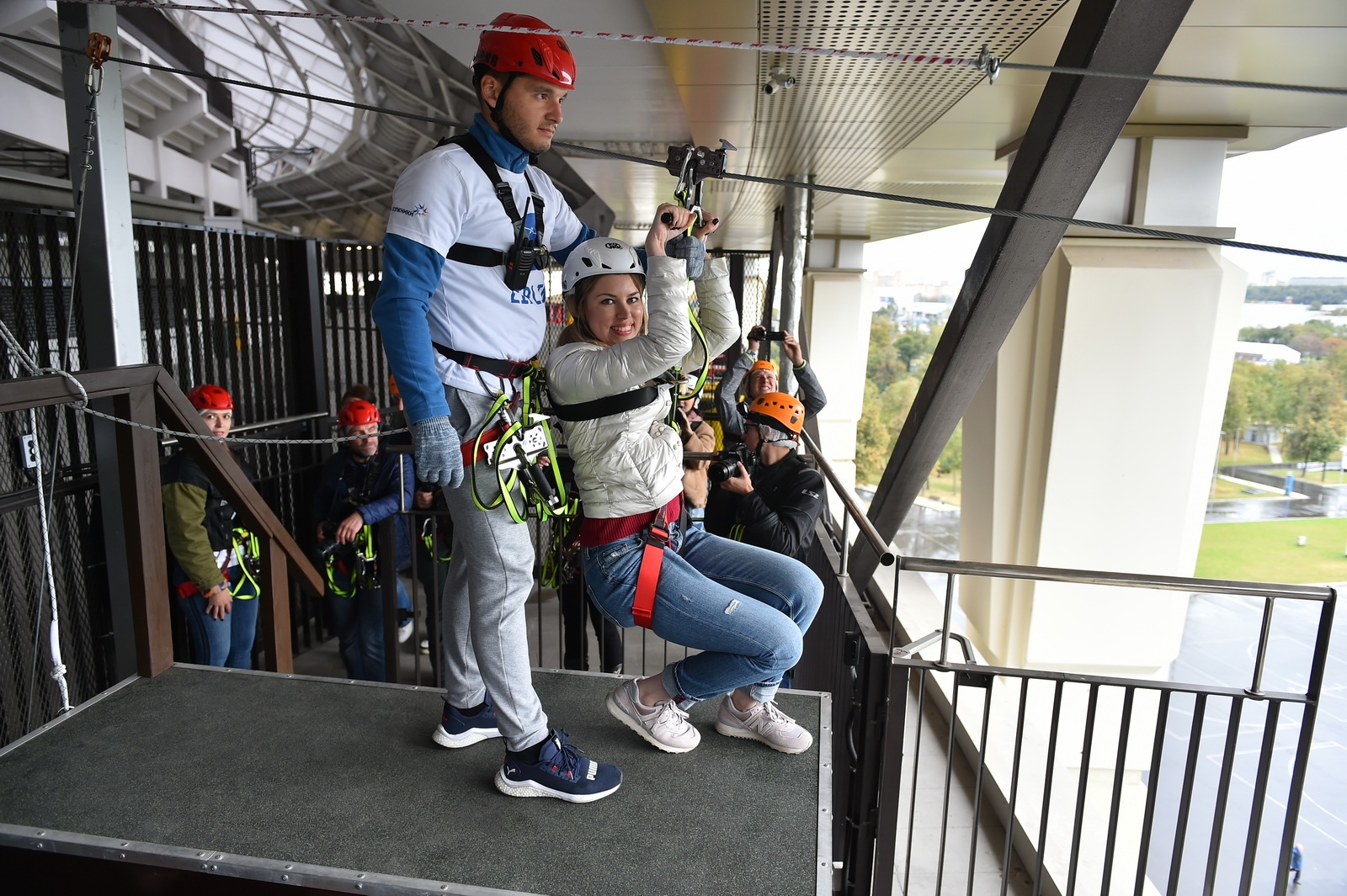 Захватывающее приключение в Лужниках – уникальный троллейный маршрут «Зиплайн». Уникальный, потому что единственный в России, созданный на стадионе. За 25 секунд пассажир «пролетает» из-под крыши «Лужников» 207 метров со скоростью до 40 км в час.