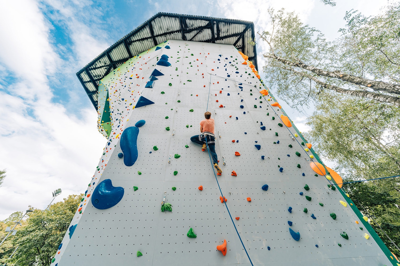 Для посетителей оборудовали крупнейший скалодромный комплекс: шесть стендов разного уровня сложности. Высота самого большого и сложного составляет 16 метров. Тренировки рассчитаны на посетителей всех возрастов и уровней подготовки – они под силу не только профессионалам, но и новичкам. Занятия платные.