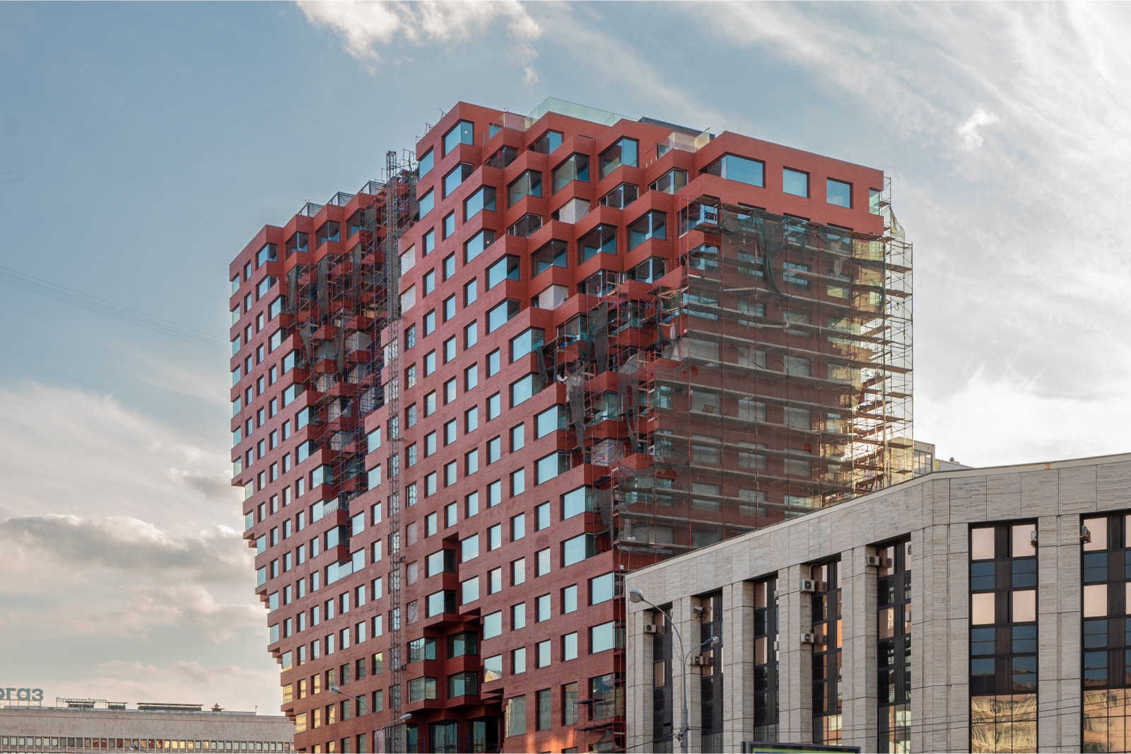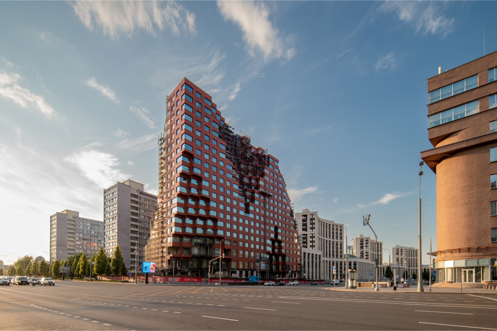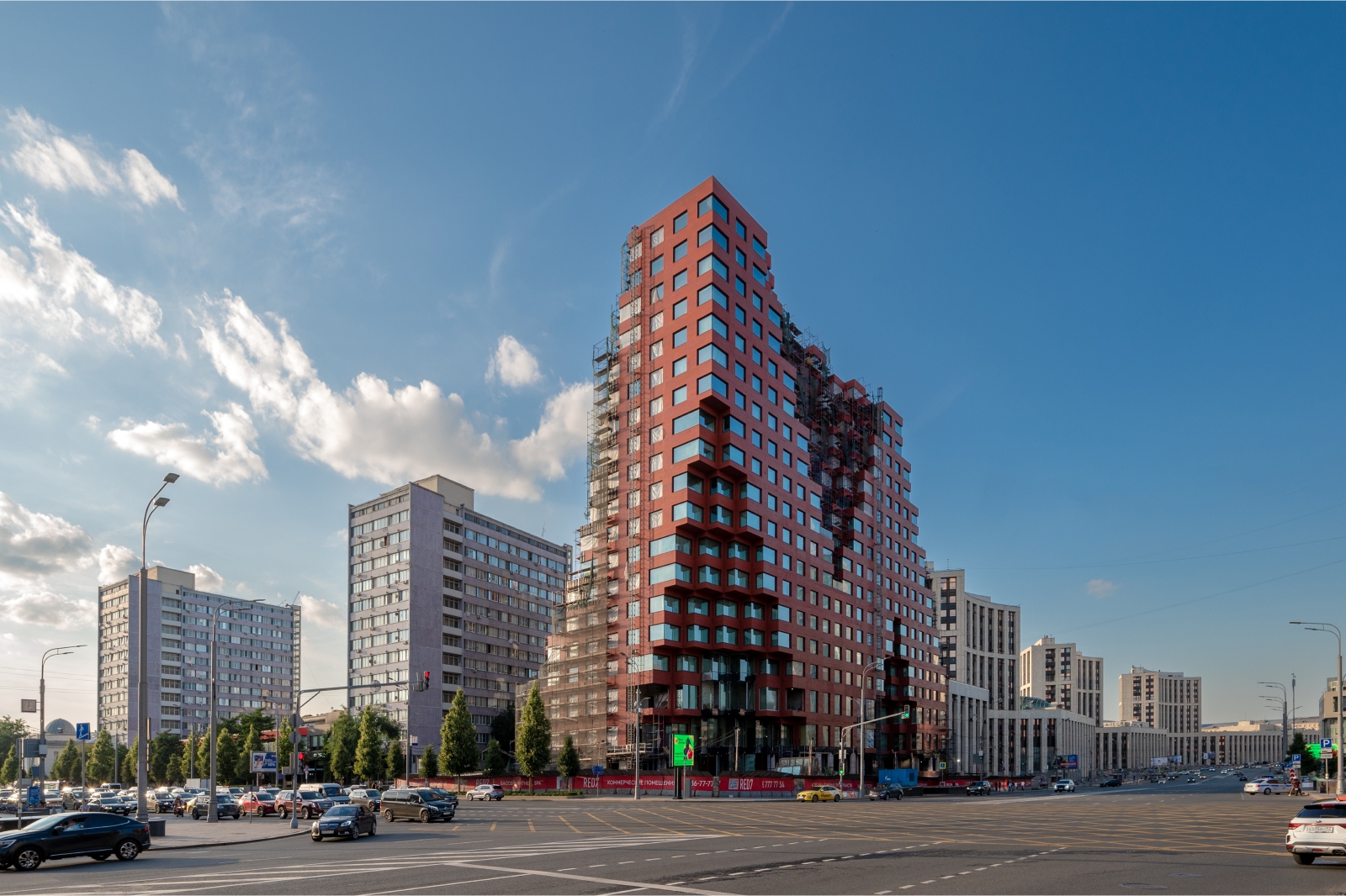 Нидерландские архитекторы позаимствовали цвет и некоторые элементы фасадов RED7 у расположенного напротив памятника конструктивизма – здания Наркомзема, что помогло органично вписать инновационный комплекс в исторический ландшафт. Девелопер проекта – ГК «Основа».