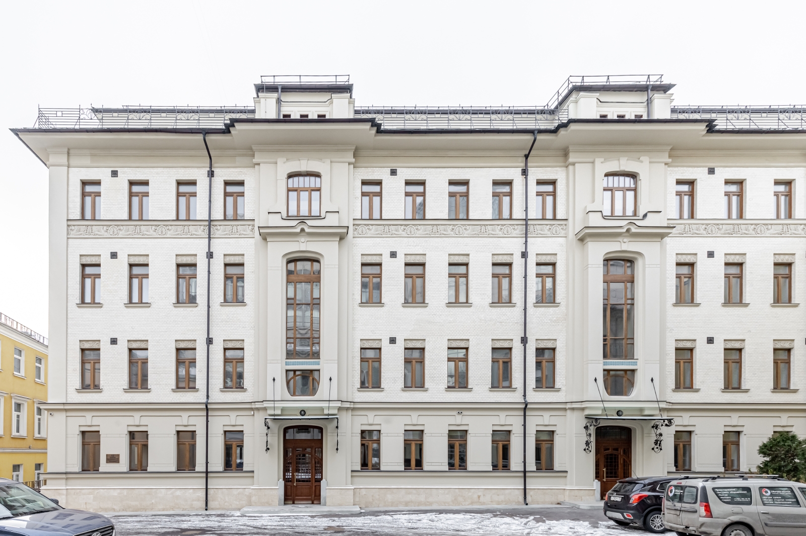 Компания восстановила конструктив здания, включая дошедшие до наших дней элементы его архитектуры: двери, плитку, фризы, лепнину, ковку. Фасад сохранил свой первоначальный облик и после реставрации.