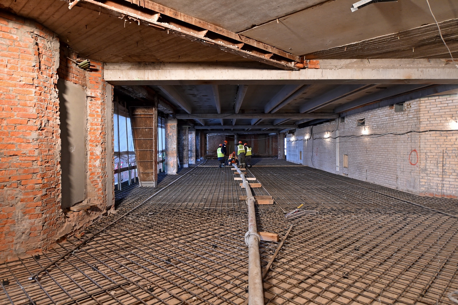 К реконструкции приступили в 2017 году. Внешний облик здания сохранится, а «начинка» полностью изменится. Крыша почти отремонтирована. Старые окна сняли, их заменят энергоэффективные стеклопакеты уникальной каскадной формы.