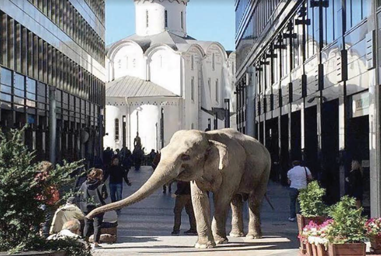 В рамках дипломной студии в Московской архитектурной школе МАРШ студенты предложили пять Белых слонов: библиотека им. Ленина, «Мосфильм», Троицк, Ипподром, Кремль, Новый Арбат. Мы поставили перед студентами задачу – предложить такую стратегию перепрограммирования объектов, которая сохраняла бы их символические функции, но возвращала бы их городу, заставляла бы их снова жить полноценной жизнью.