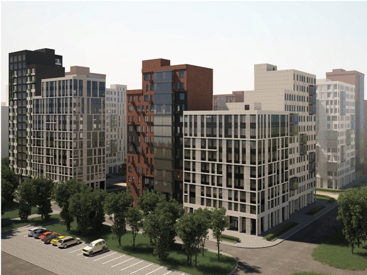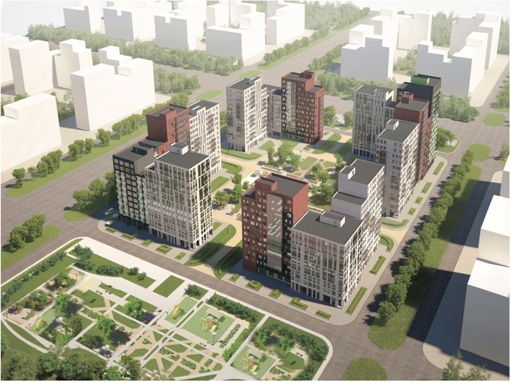 Проектная организация «ТЕРРА АУРИ», работающая с компанией «Главмосстрой», представила проект периметральной застройки участка со смещением секций с высотой 6-17 этажей. Жилые секции имеют меридианальную и широтную ориентацию. Большинство квартир имеют двухстороннюю ориентацию или являются угловыми. Входы в общественные помещения расположены со стороны улиц районного значения и бульваров. Предусмотрено витражное остекление первых этажей в пол-этажа. На основе одной инженерной схемы предусмотрена вариативность панировочных решений этажа.