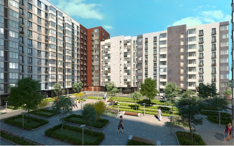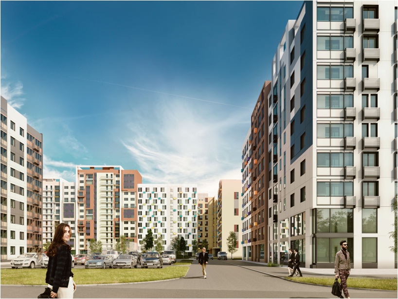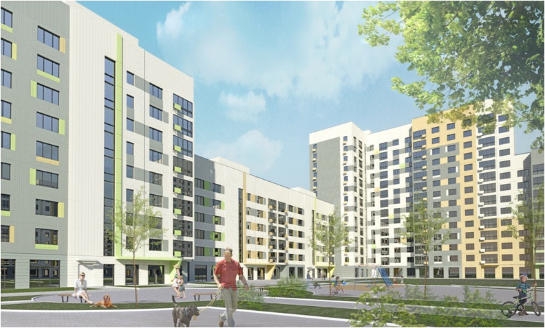 Обеспечена градостроительная гибкость планировки застройки за счет смещения блок-секций относительно друг друга.