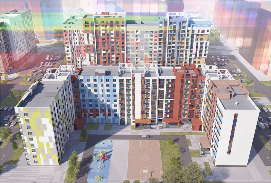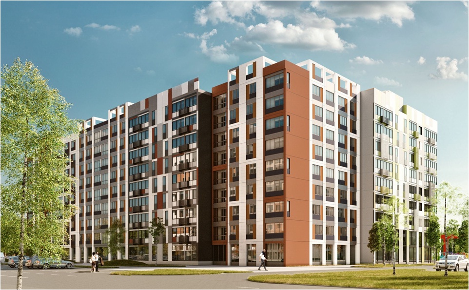Варианты фасадов с использованием архитектурного бетона с разными цветовыми решениями, а также размещением групп балконов разного цвета в разных местах фасада позволяют добиться очень индивидуальных архитектурных решений.