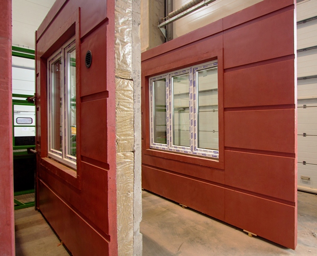 Индустриальное производство трехслойных панелей из окрашенного в массе бетона