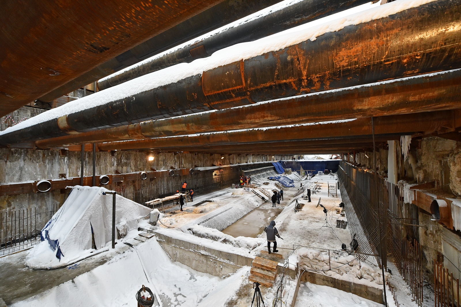 5 февр. 2018 г. Осмотр хода строительства станции «Юго-Восточная» Кожуховской линии Московского метрополитена