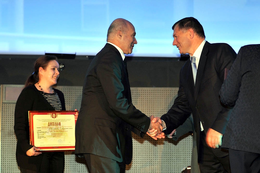 Награждение победителей городского конкурса "Лучший реализованный проект 2011 года". М. Хуснуллин, Б. Фролов, С. Лёвкин, А. Максименко