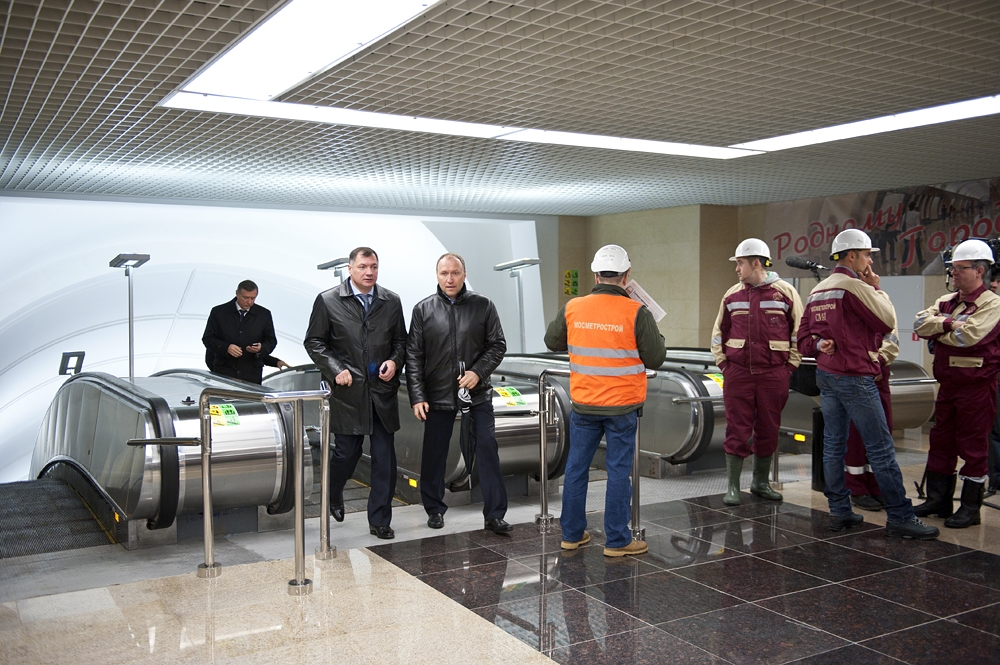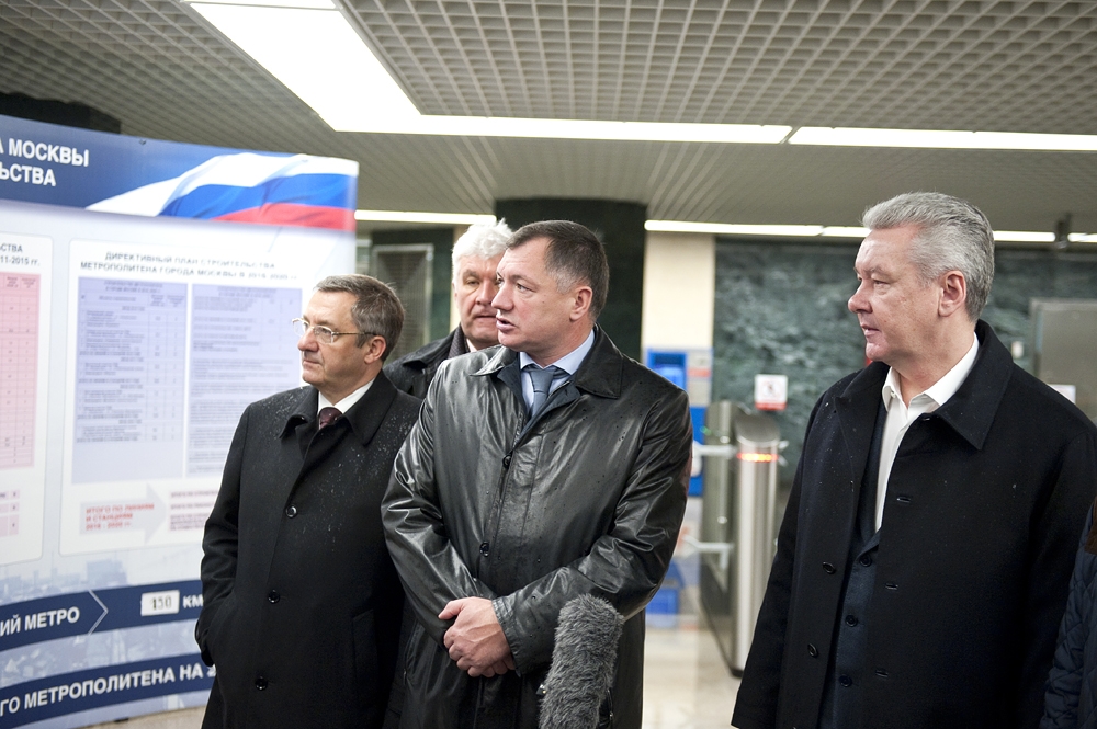 12 нояб. 2012 г. Осмотр хода строительства станции "Лермонтовский проспект" Таганско-Краснопресненской линии метро. С. Собянин, М. Хуснуллин, А. Бочкарев, И. Беседин 16 фото