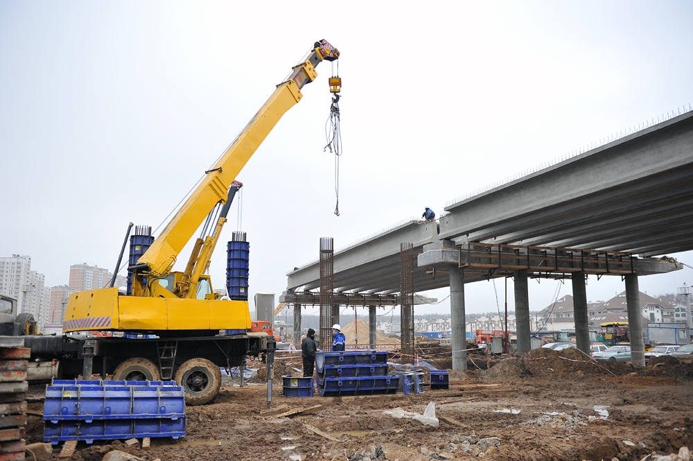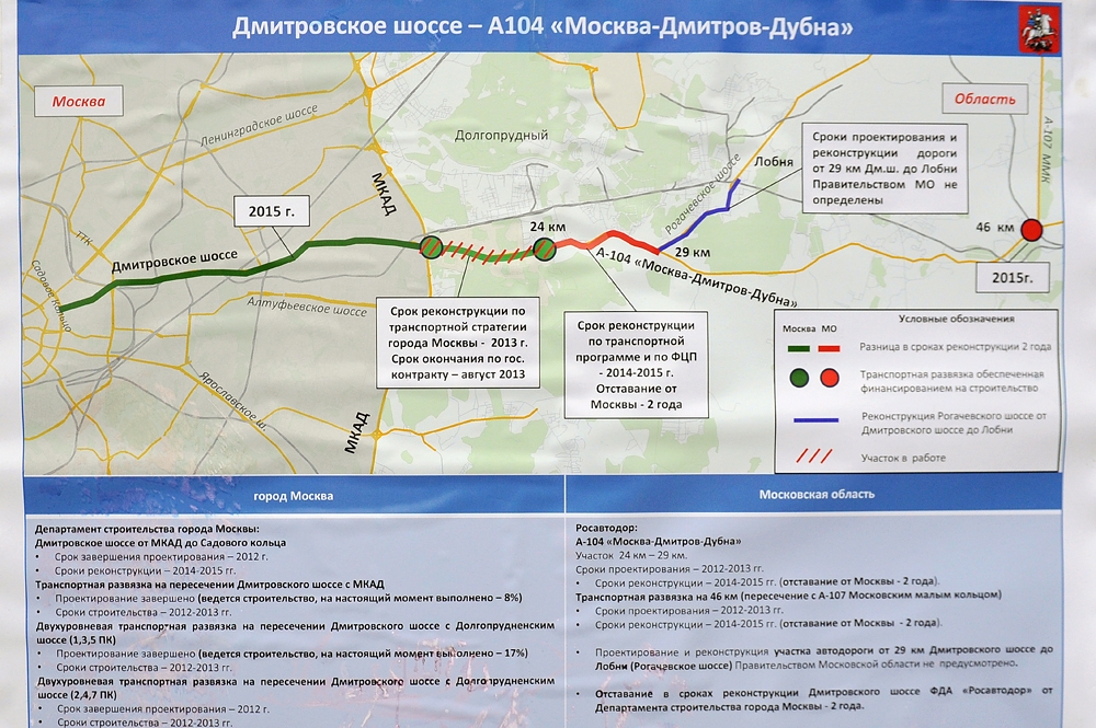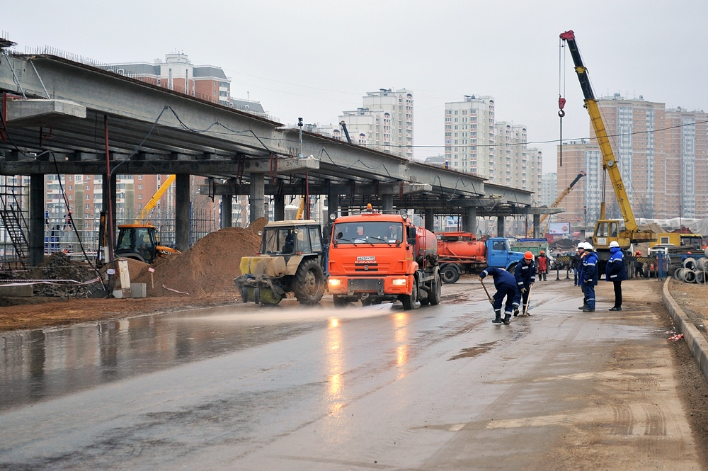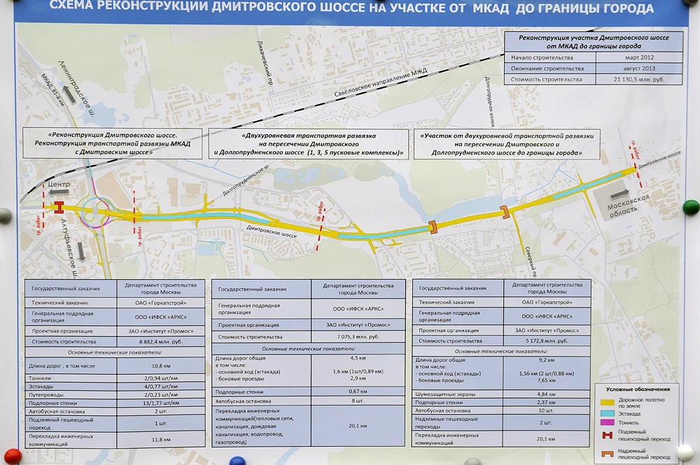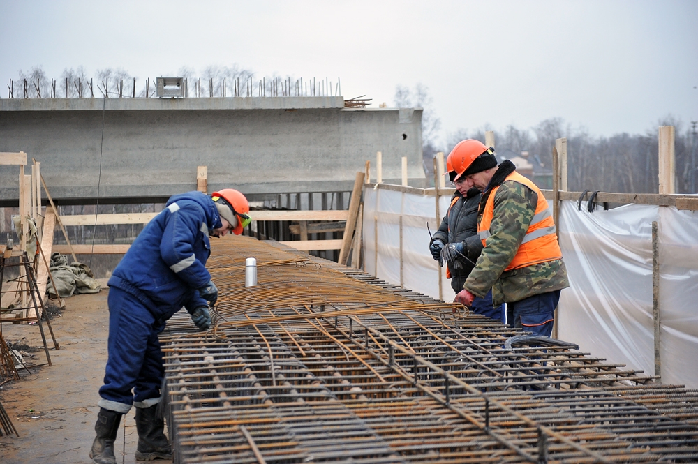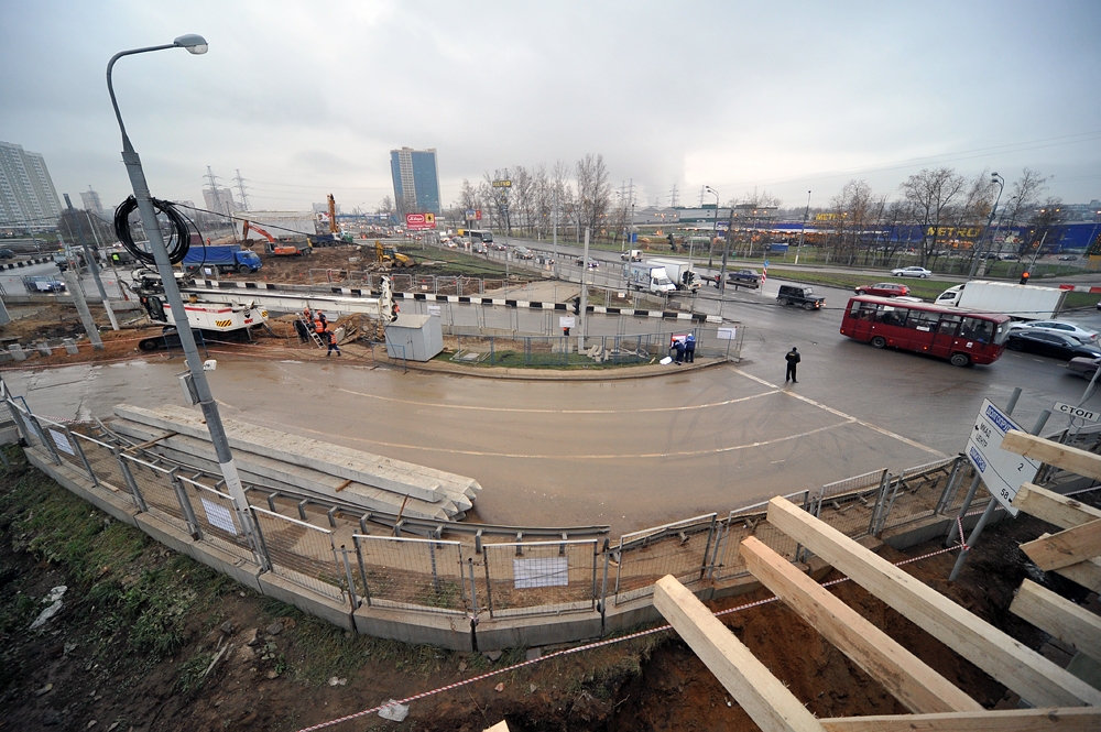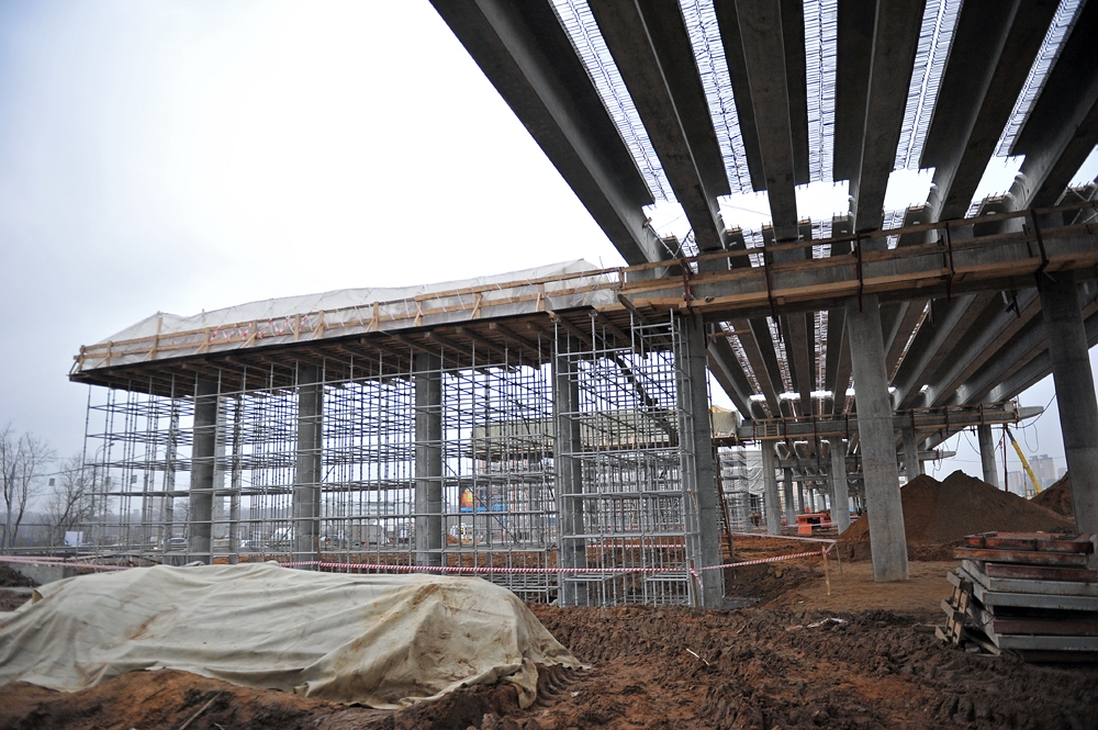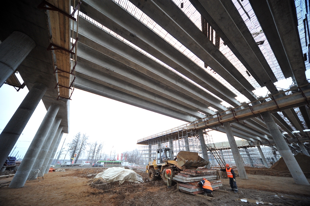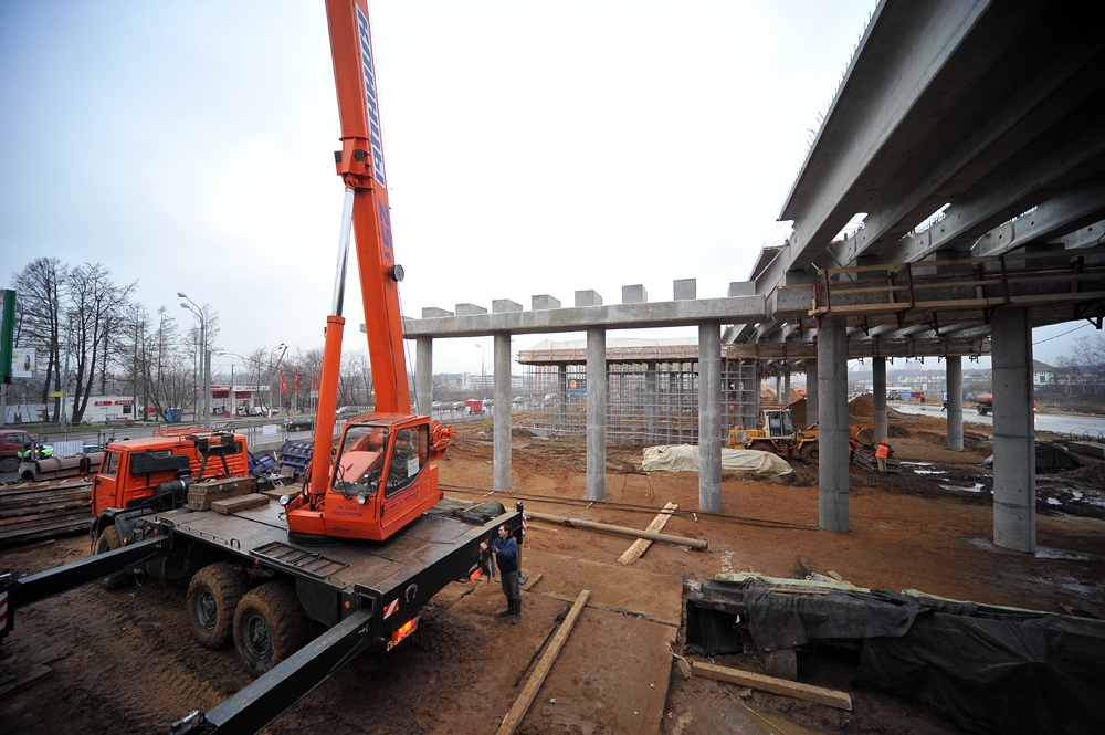 Осмотр хода строительства эстакады на пересечении Дмитровского шоссе с Долгопрудненским и Челобитьевским шоссе. С. Собянин, М. Хуснуллин, А. Бочкарев