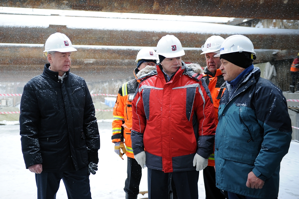 12 нояб. 2012 г. Осмотр хода строительства станции "Лермонтовский проспект" Таганско-Краснопресненской линии метро. С. Собянин, М. Хуснуллин, А. Бочкарев, И. Беседин 16 фото
