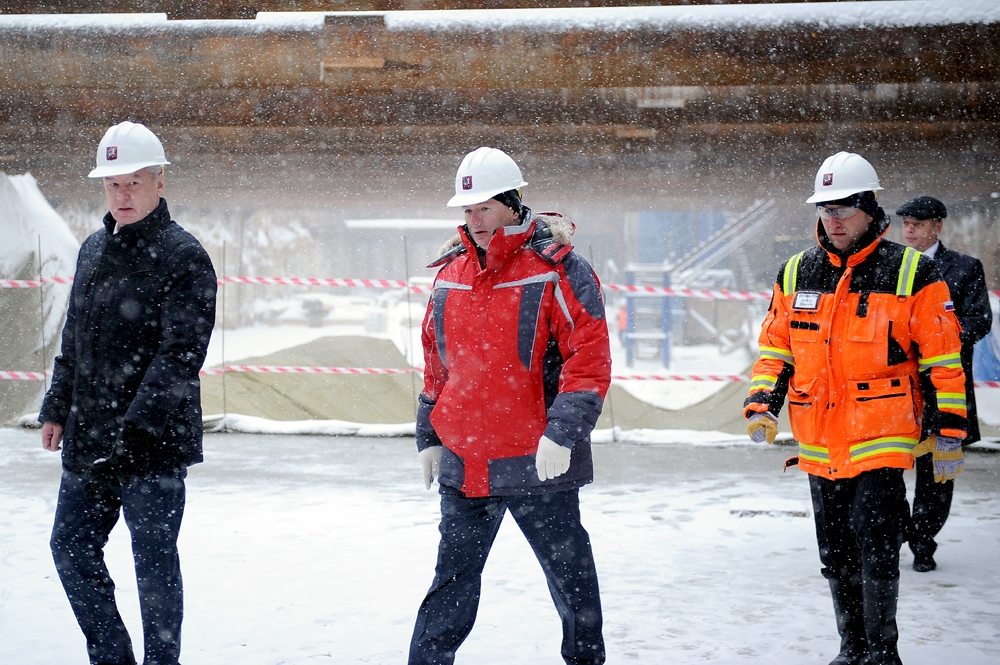 19 нояб. 2012 г. Осмотр хода строительства станции "Хорошевская" Третьего пересадочного контура метрополитена. С. Собянин, М. Хуснуллин, А. Бочкарев 15 фото