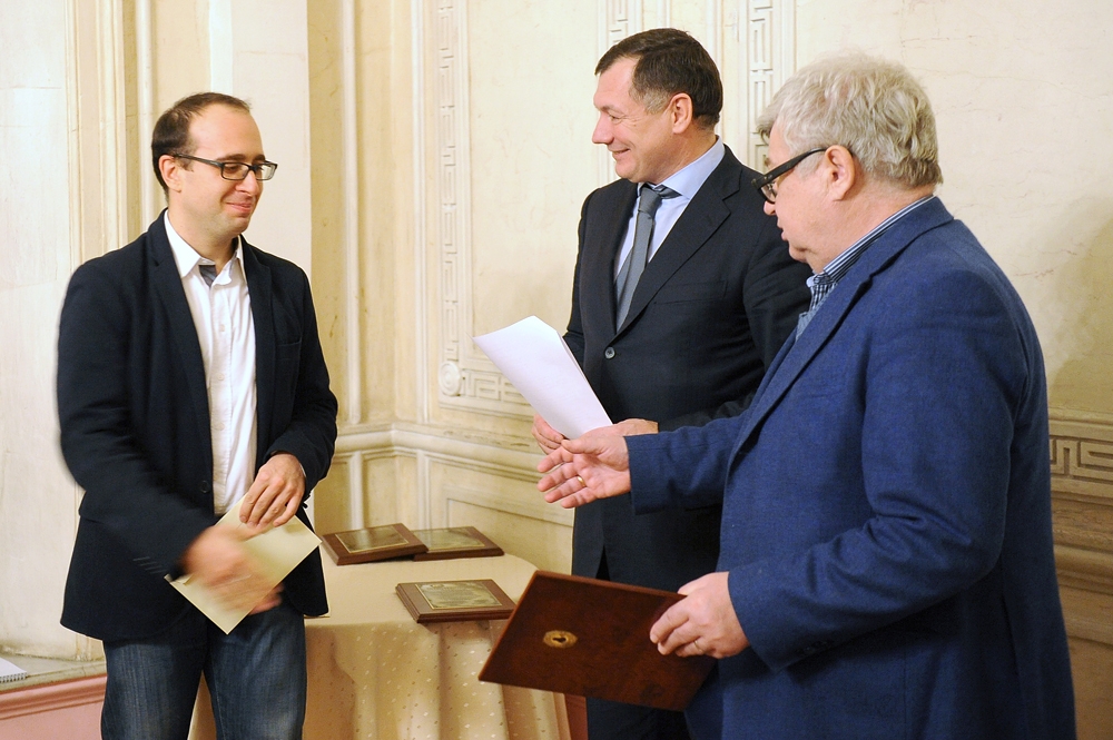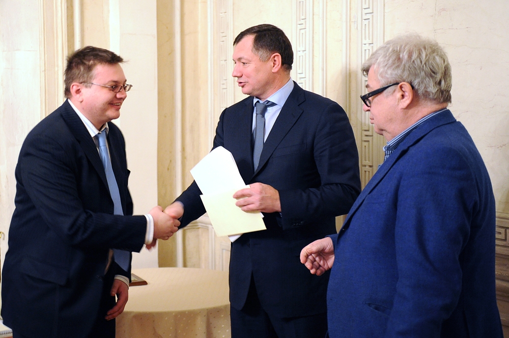 11 дек. 2012 г. Награждение победителей конкурса на разработку концепции развития Московской агломерации (в рамках фестиваля "Зодчество-2012"). М. Хуснуллин, А. Боков, С. Кузнецов 21 фото