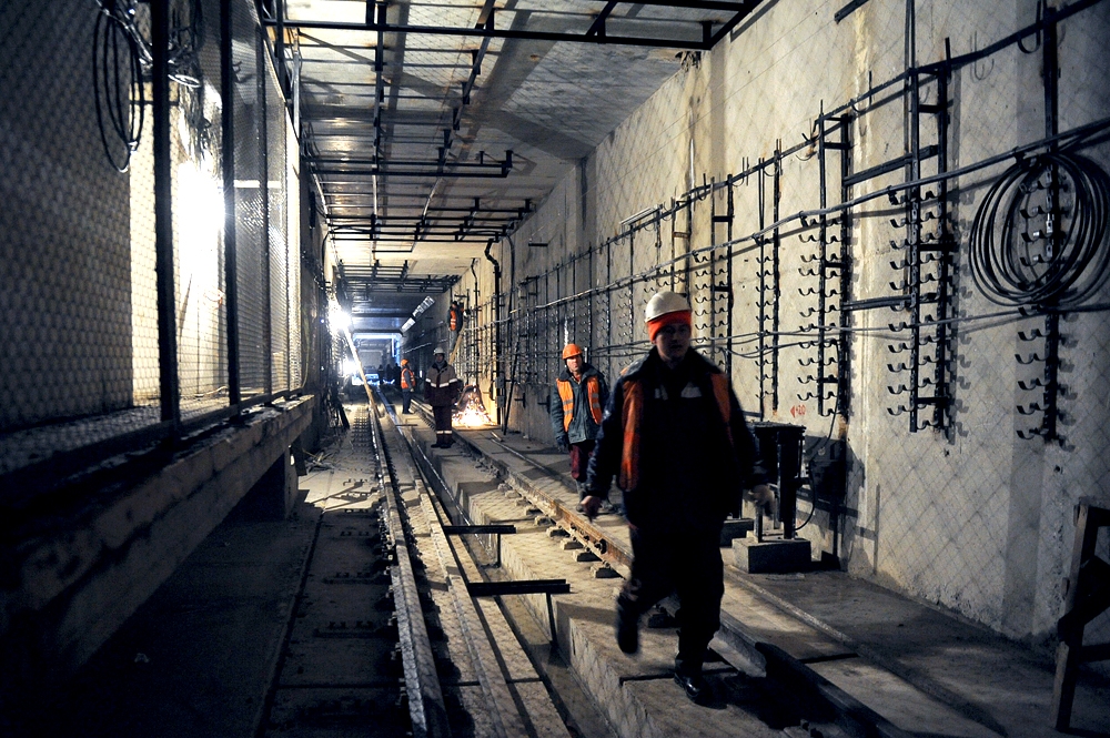 29 нояб. 2012 г. Осмотр хода строительства станции "Лесопарковая" Бутовской линии метрополитена. С. Собянин, М. Хуснуллин, А. Бочкарев 18 фото