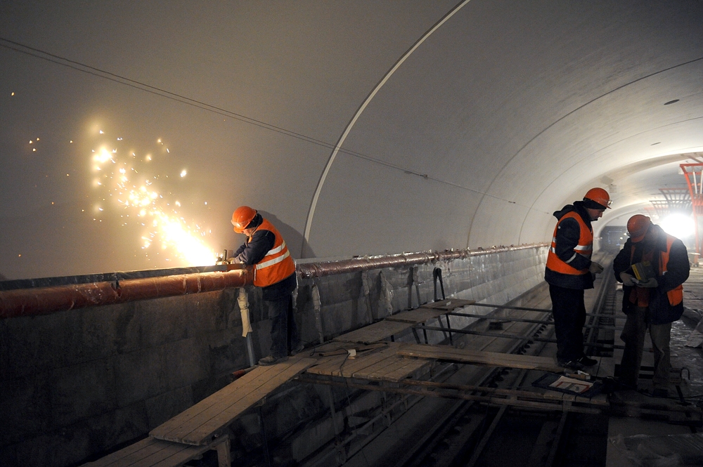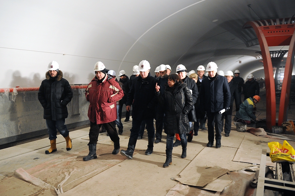 17 дек. 2012 г. Осмотр хода строительства станции "Петровско-Разумовская" Люблинско-Дмитровской линии метро. С. Собянин, М. Хуснуллин, А. Бочкарев 11 фото