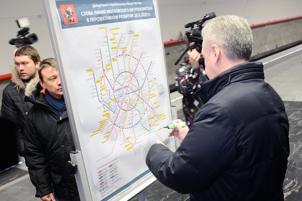 17 дек. 2012 г. Осмотр хода строительства станции "Петровско-Разумовская" Люблинско-Дмитровской линии метро. С. Собянин, М. Хуснуллин, А. Бочкарев 11 фото