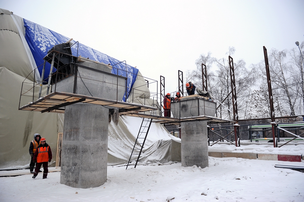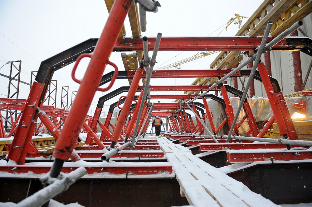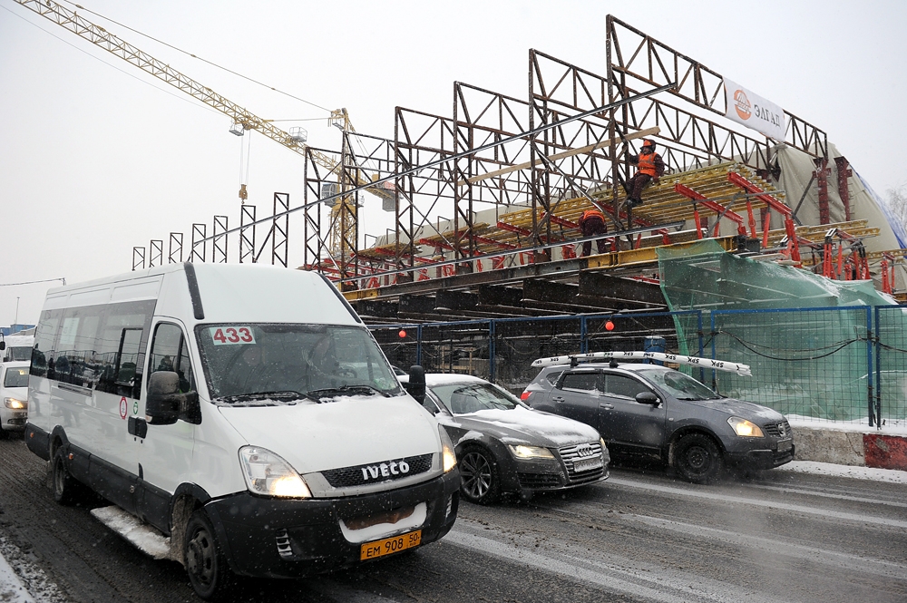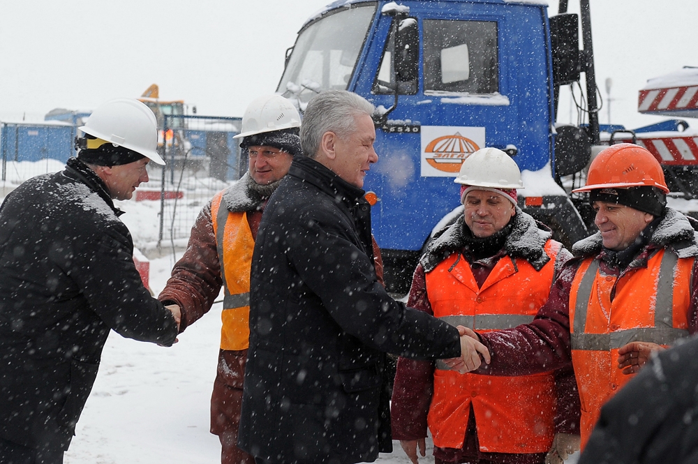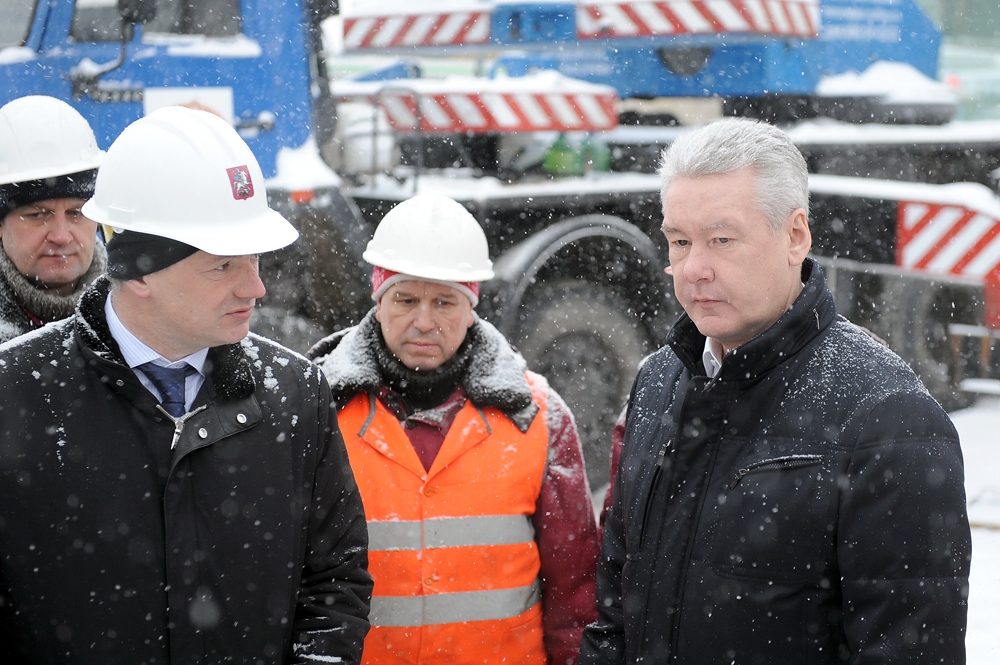 Осмотр хода строительства транспортной развязки на пересечении Новоясеневского проспекта и Профсоюзной улицы. С. Собянин, М. Хуснуллин, А. Бочкарев