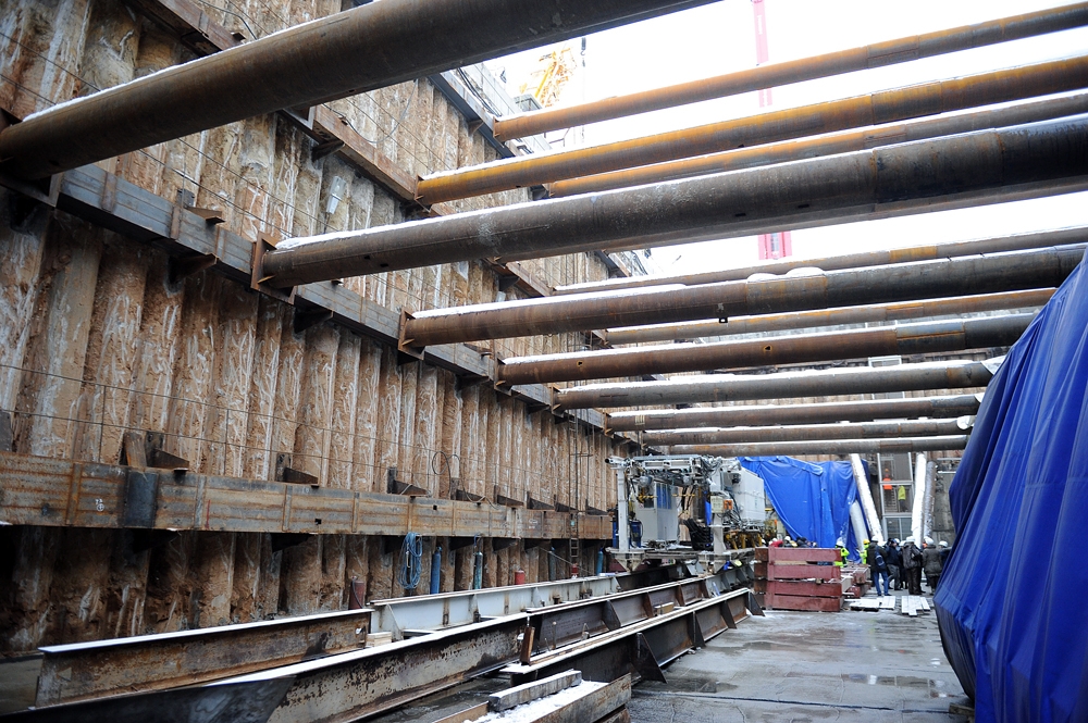16 февр. 2013 г. Осмотр хода строительства Солнцевской линии метрополитена на участке «Деловой центр» - «Парк Победы». С. Собянин, М. Хуснуллин 26 фото