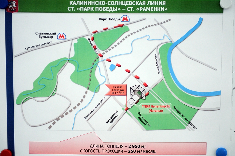 Запуск тоннелепроходческого щита (ст. м. "Ломоносовский проспект" - ст. м. "Парк Победы"). А. Бочкарев 8 февр. 2013 г. 00:00 Теги Калининско-Солнцевская линия метро проходка тоннелей строительство метро тоннелепроходческий щит тоннели ТПМК Копировать ссылку Скрыть ссылку Другие материалы по теме Южный участок Третьего пересадочного контура (ТПК) ст. "Каховская" - ст. "Проспект Вернадского". 5 этап: ОЗЭП на ст. "Калужская" Южный участок Третьего пересадочного контура (ТПК) ст. «Каховская» - ст. «Проспект Вернадского». 4 этап: «Реконструкция участка – ст. м. «Каширская»- ст. м. «Каховская». Этап 4.3: «Подготовительные работы. Демонтажные работы на участке Каховской линии метрополитена от ПК0163+88,34 до ПК0116+32,00» Строительство эстакад основного хода, многоуровневых транспортных развязок в районе ст. м. "Владыкино", ст. м. "Ботанический сад", эстакад-съездов Ярославского шоссе, мостов через р. Яуза, р. Лихоборка, переустройство инженерных сетей и коммуникаций. Строительство эстакад основного хода, многоуровневых транспортных развязок в районе ст. м. "Владыкино", ст. м. "Ботанический сад", эстакад-съездов Ярославского шоссе, мостов через р. Яуза, р. Лихоборка, переустройство инженерных сетей и коммуникаций. «Ломоносовский проспект» Статьи 16 февр. 2013 г. Осмотр хода строительства Солнцевской линии метрополитена на участке «Деловой центр» - «Парк Победы». С. Собянин, М. Хуснуллин 26 фото 11 февр. 2013 г. Со щитом до Победы