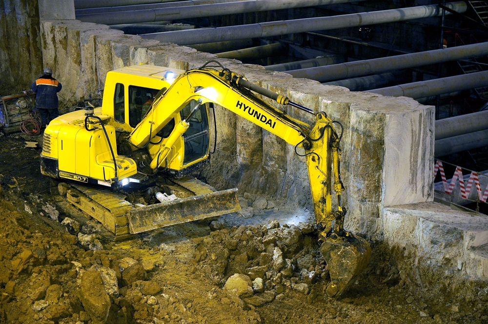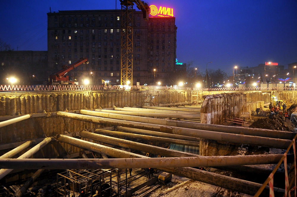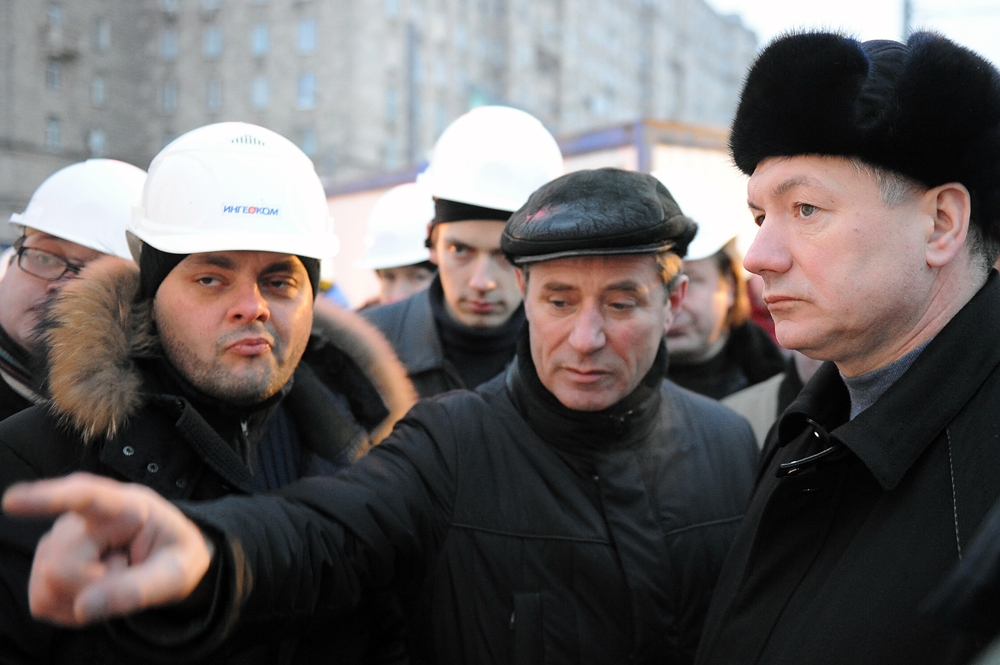 Посещение строящейся станции "Ломоносовский проспект" Калининско-Солнцевской линии метрополитена. С. Собянин, М. Хуснуллин