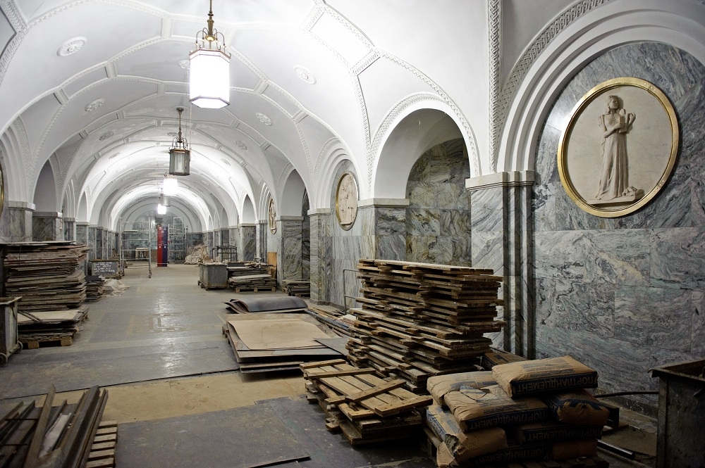 28 апр. 2012 г. Открытие после реконструкции станции "Парк культуры" Кольцевой линии метрополитена. С. Собянин, И. Беседин 22 фото