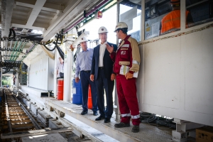Запуск тоннелепроходческого комплекса от электродепо "Лихоборы" в сторону станции "Верхние Лихоборы". С. Собянин, М. Хуснуллин, А. Бочкарев