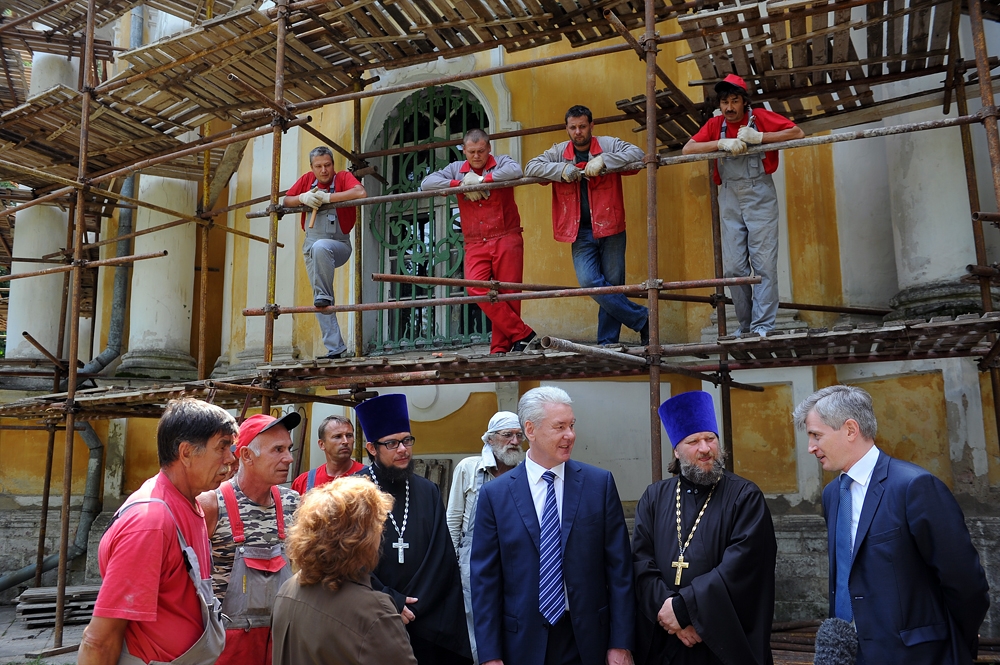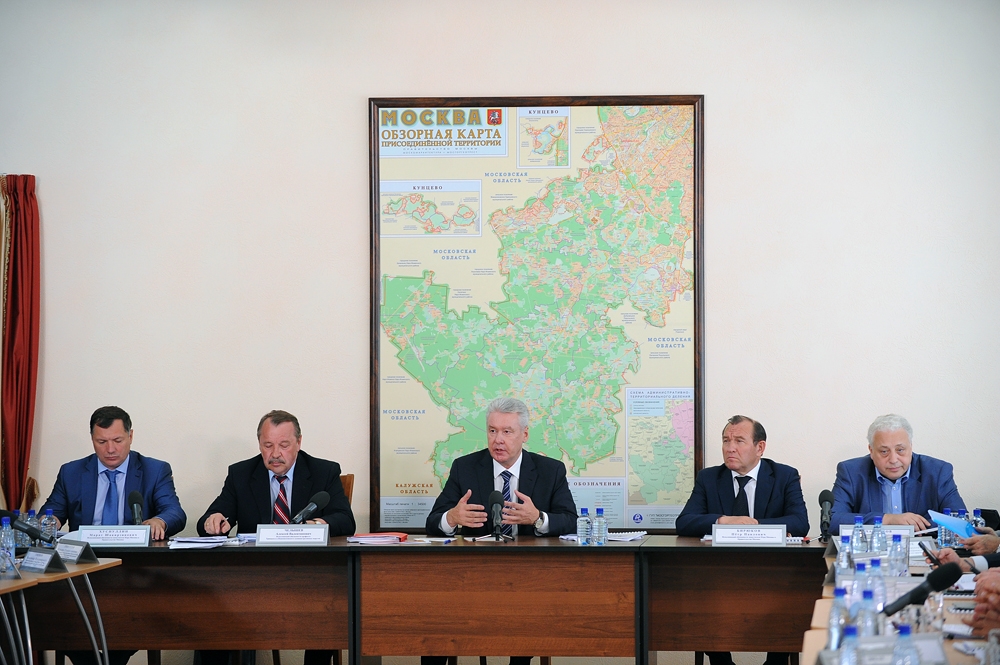 11 июл. 2013 г. Осмотр хода строительства пилотного детского сада в районе Куркино. С. Собянин, М. Хуснуллин