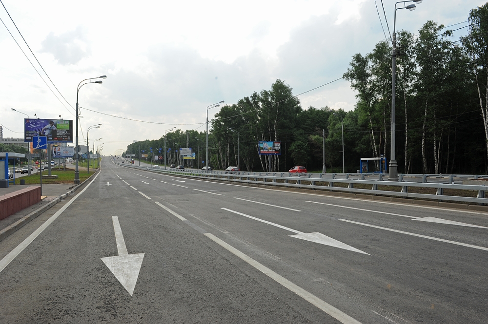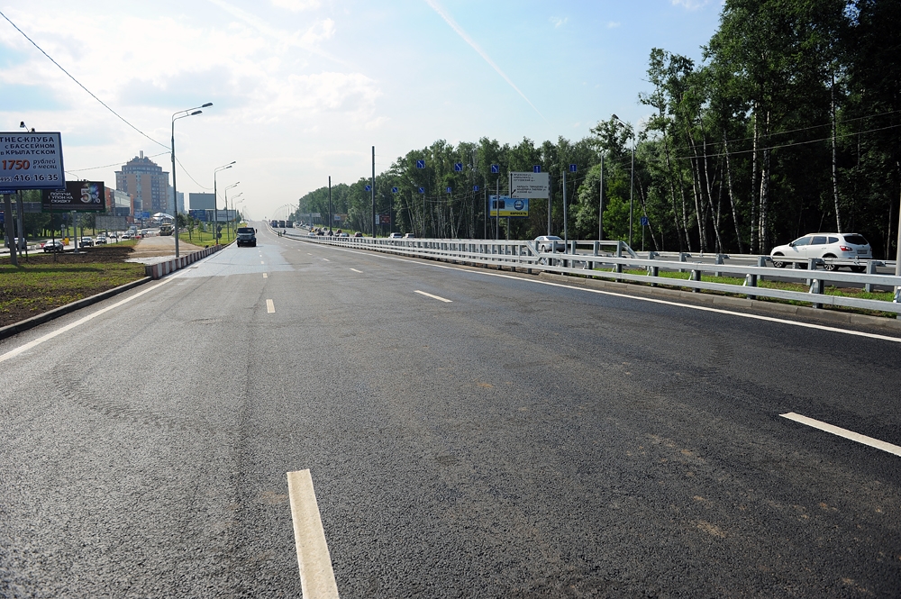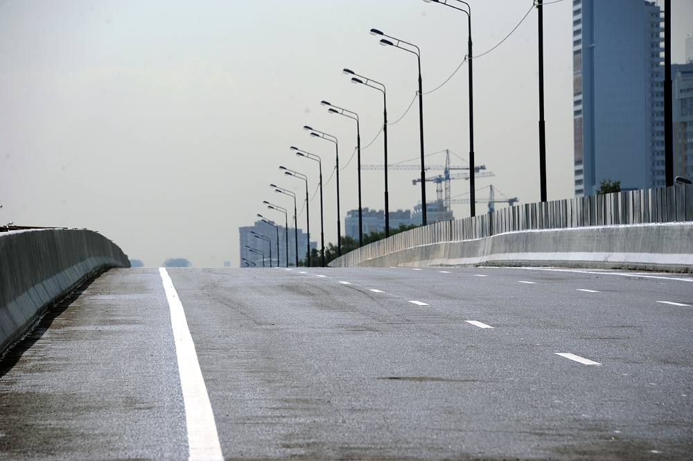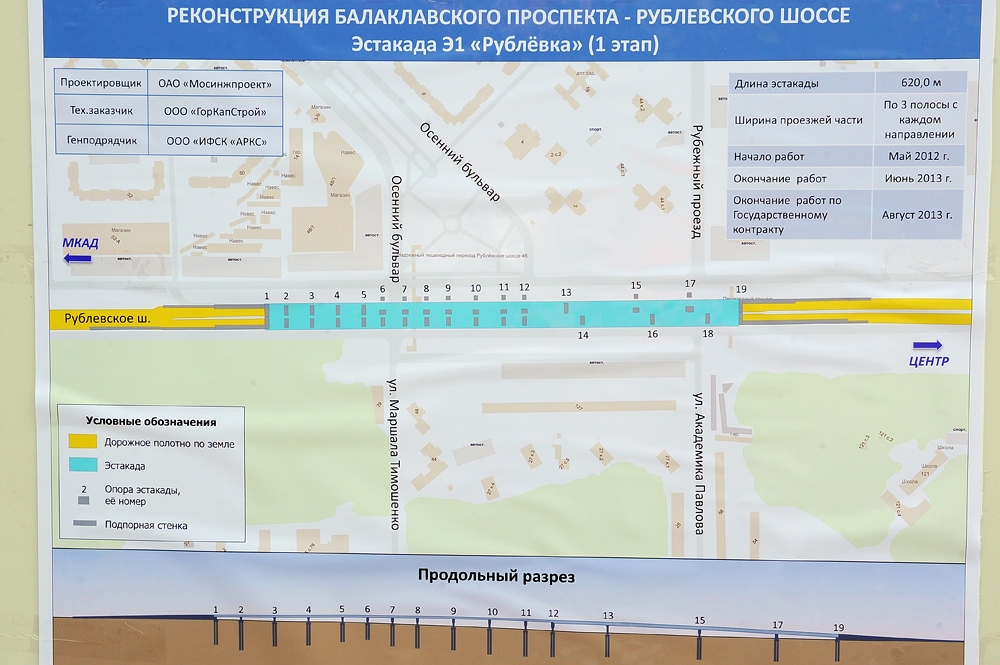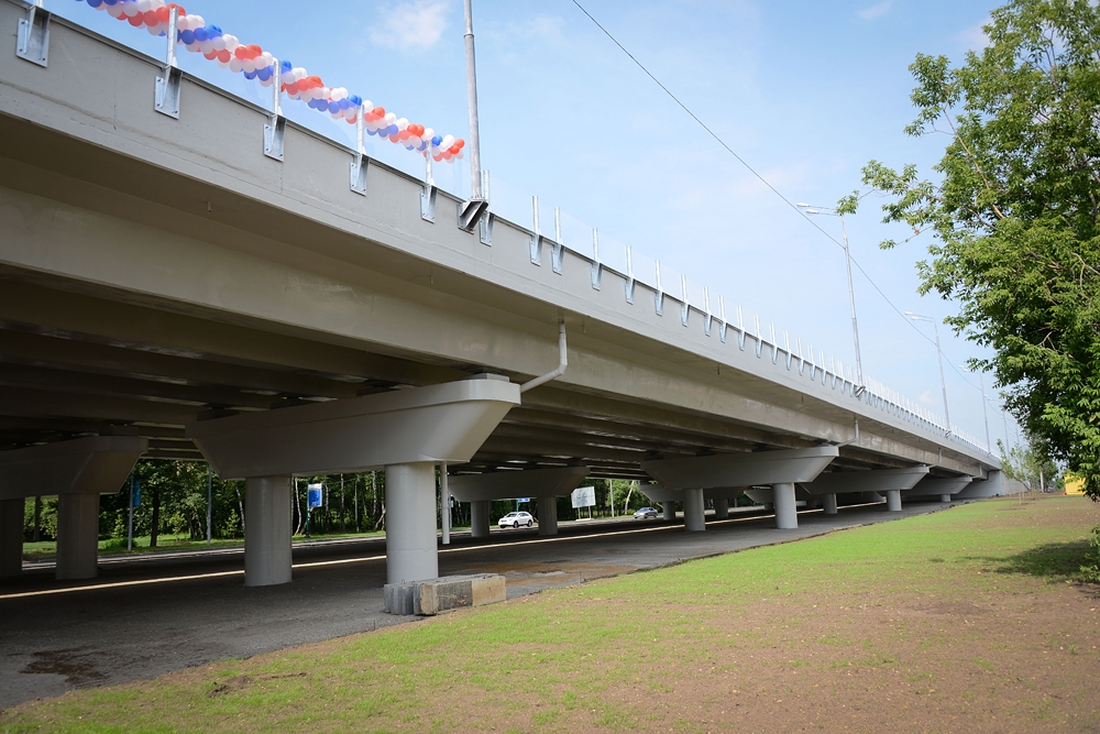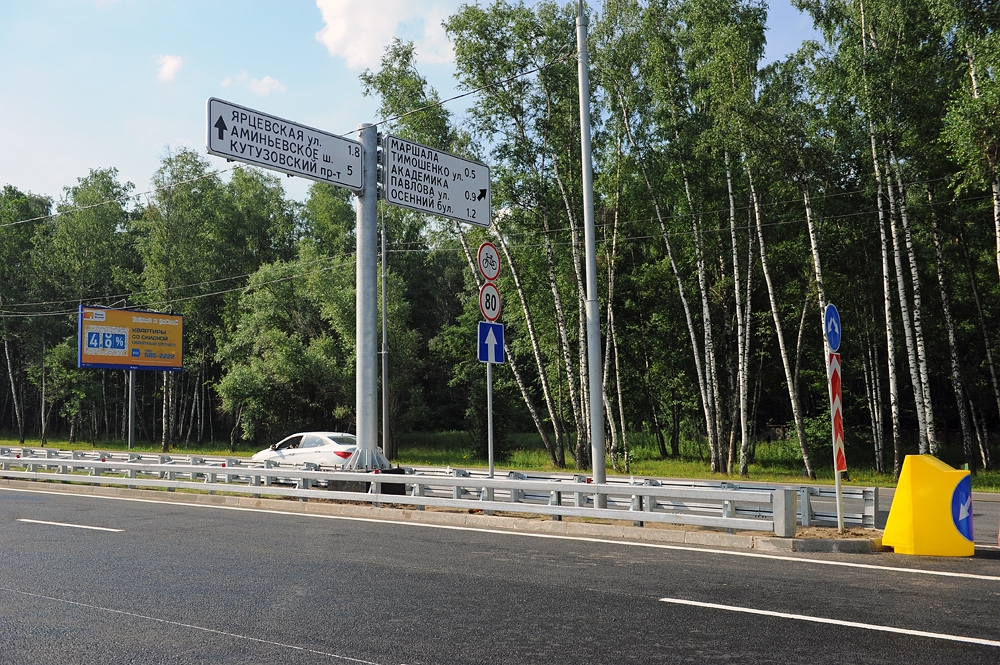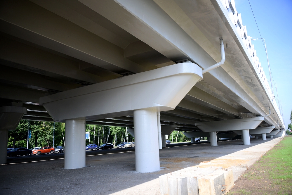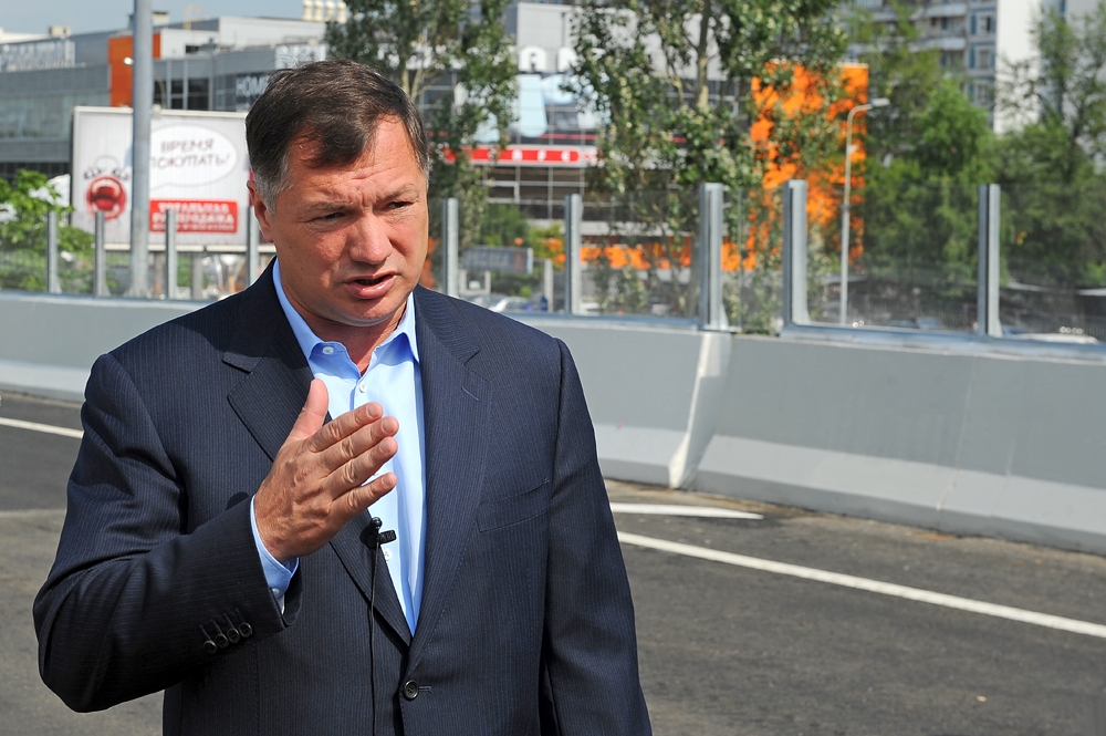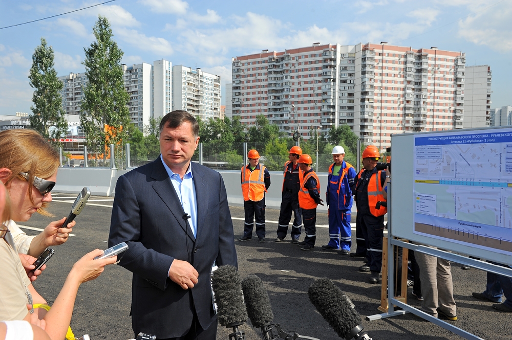 Открытие эстакады на пересечении Рублевского шоссе с улицами Маршала Тимошенко, Академика Павлова и Осенним бульваром. С. Собянин, М. Хуснуллин. А. Бочкарев