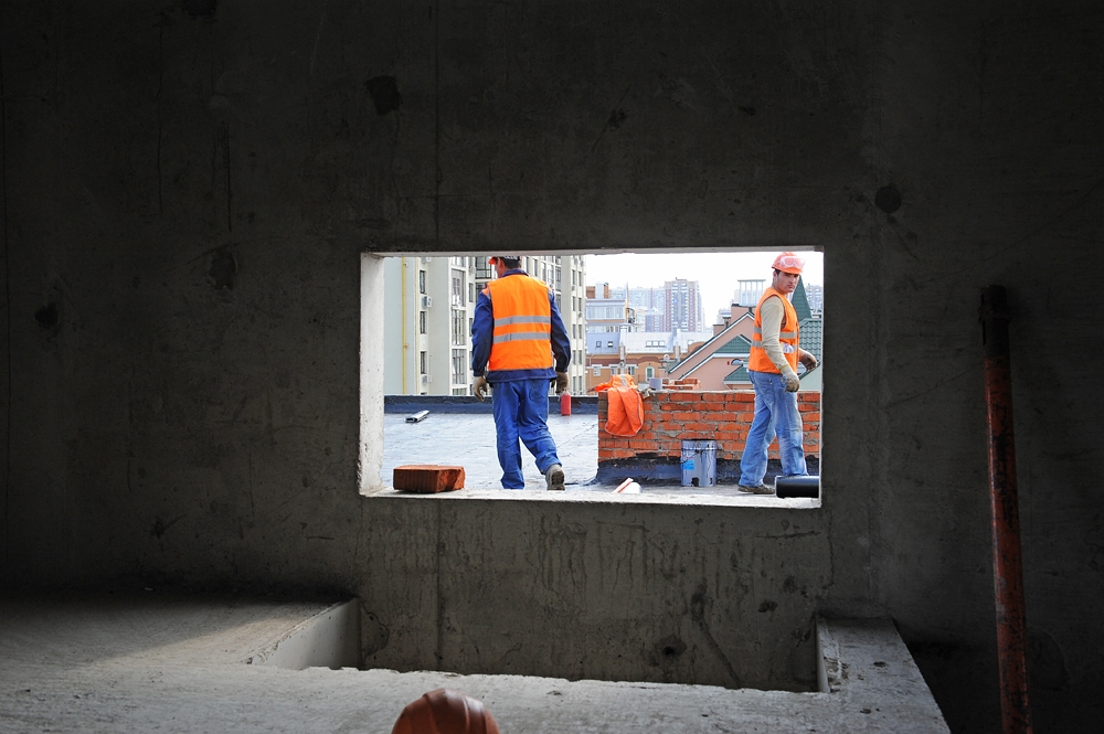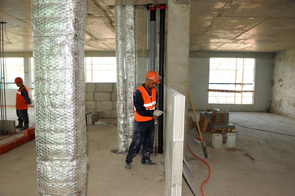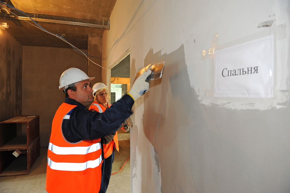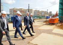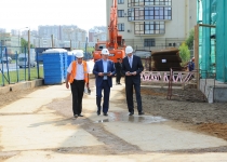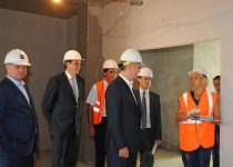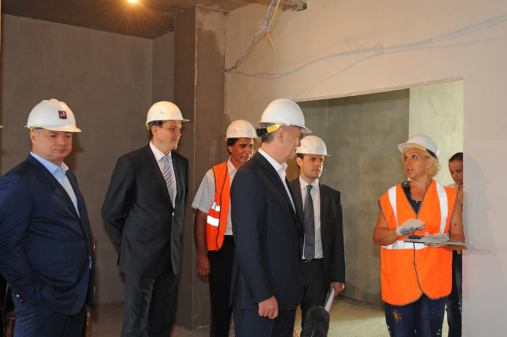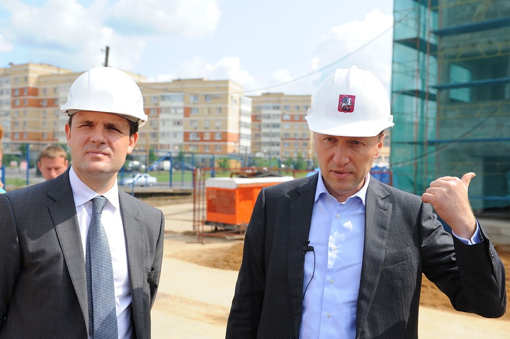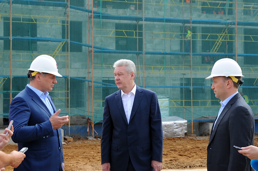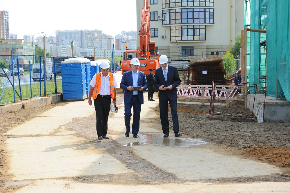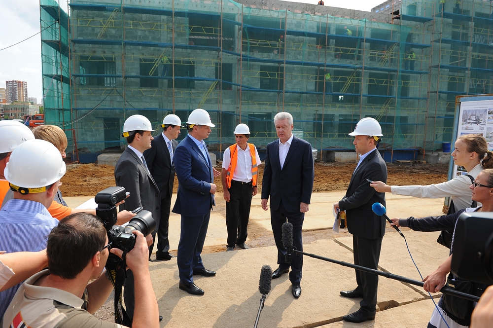 11 июл. 2013 г. Осмотр хода строительства пилотного детского сада в районе Куркино. С. Собянин, М. Хуснуллин