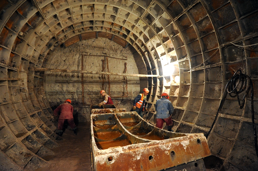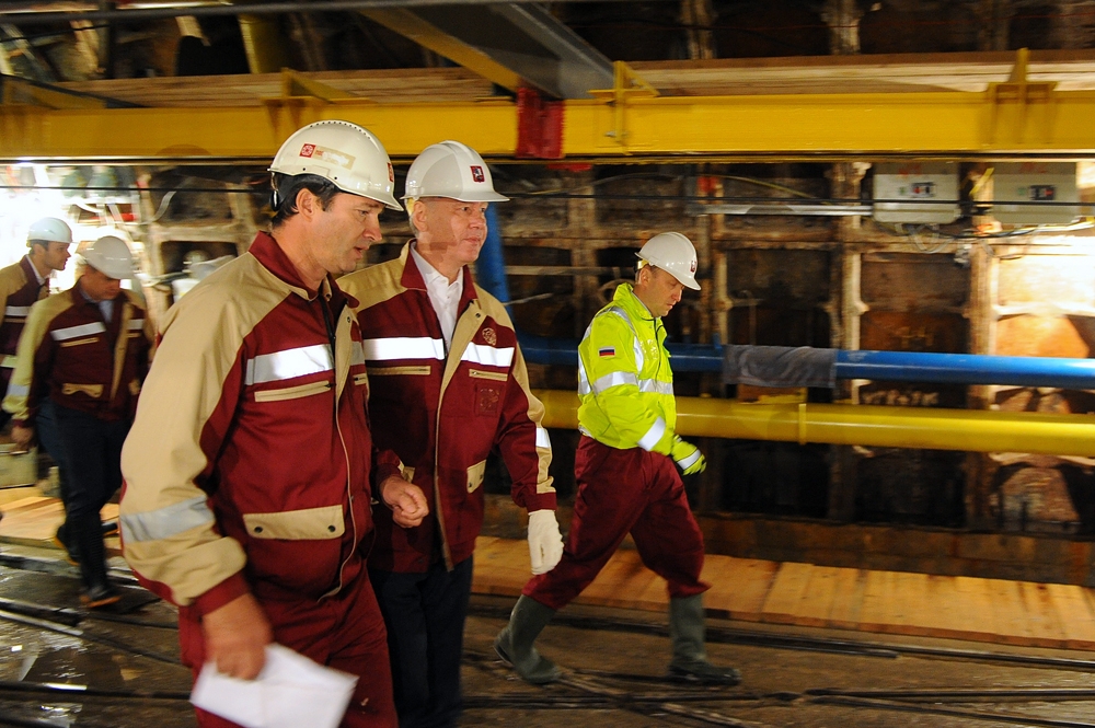 23 июл. 2013 г. Осмотр хода строительства станции метро "Селигерская" Люблинско-Дмитровской линии С. Собянин, М. Хуснуллин