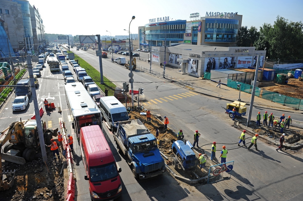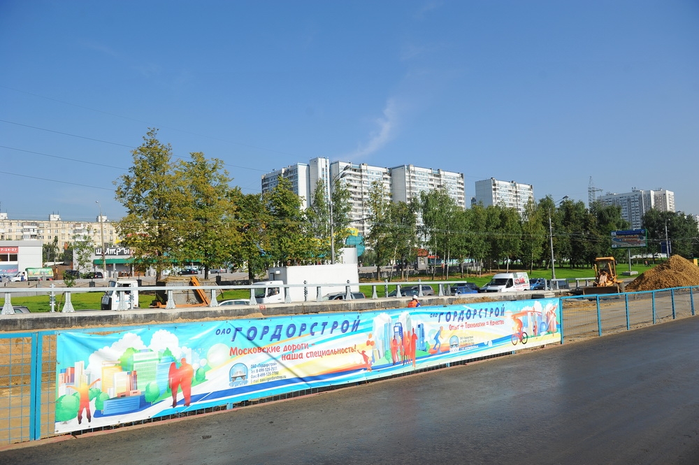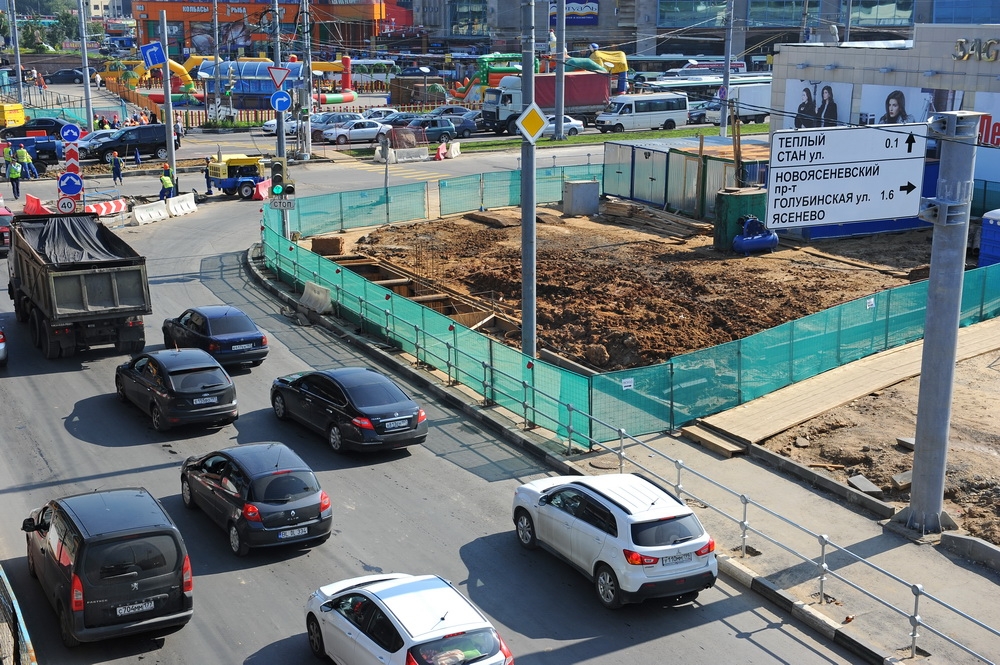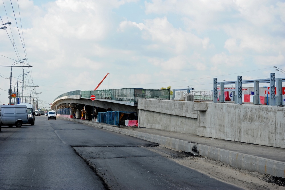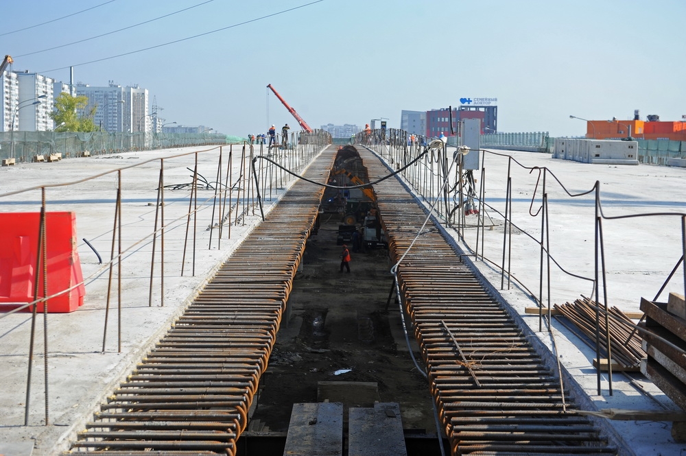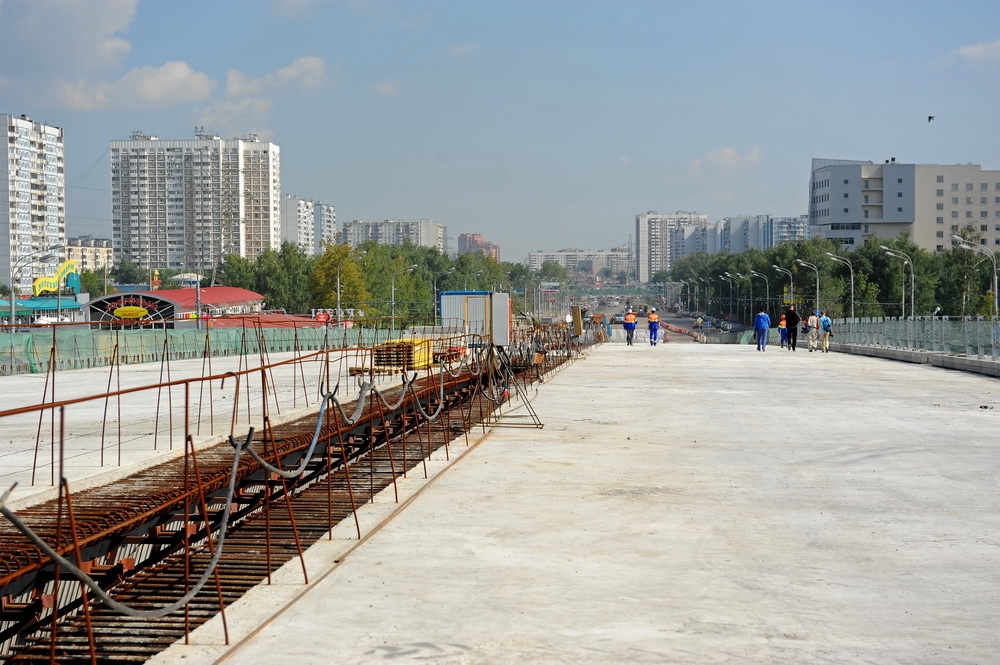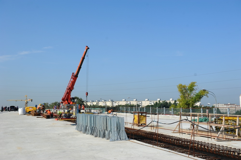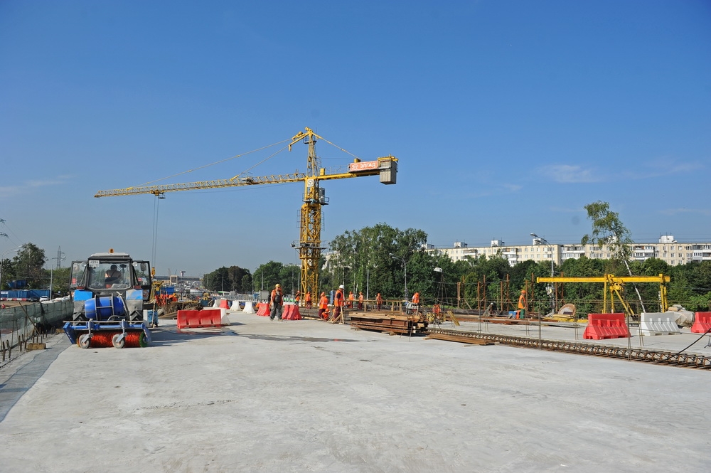 Осмотр строительства транспортной развязки на пересечении Новоясеневского проспекта и Профсоюзной улицы. С. Собянин, М. Хуснуллин, А. Бочкарев
