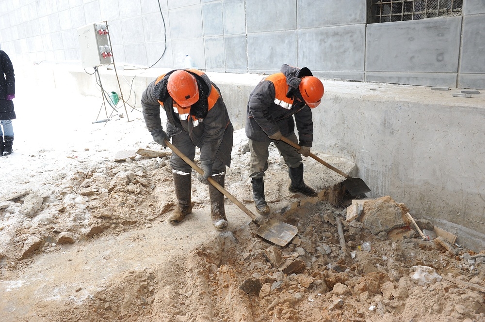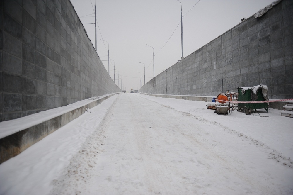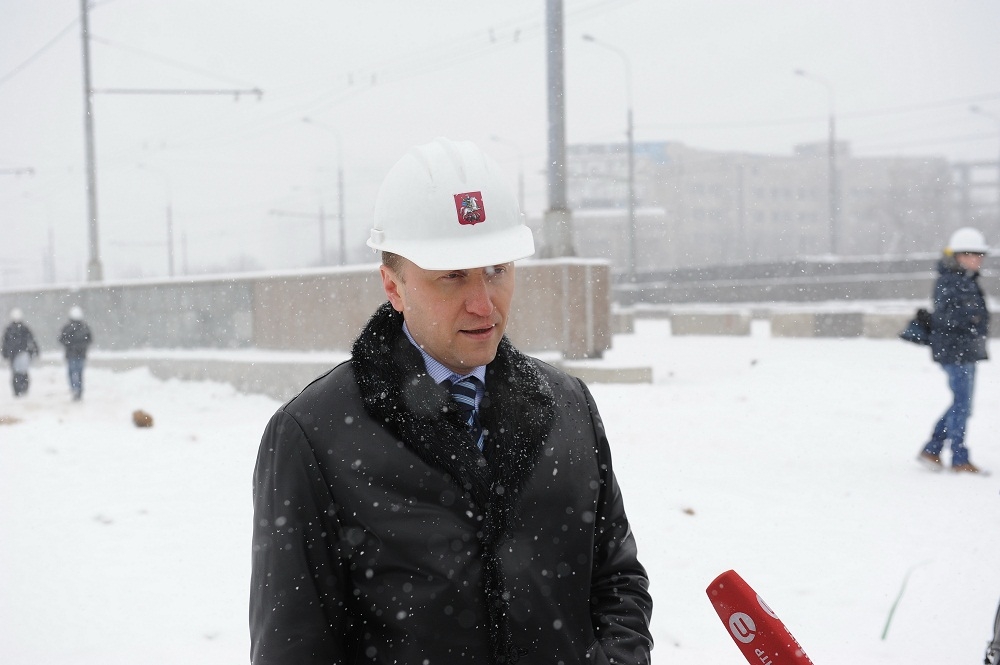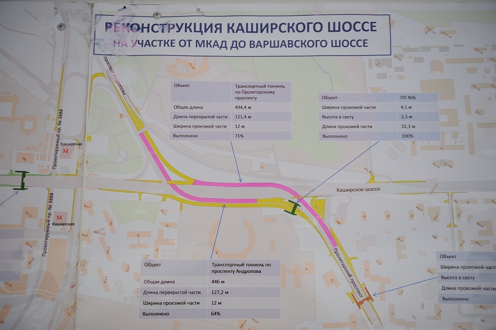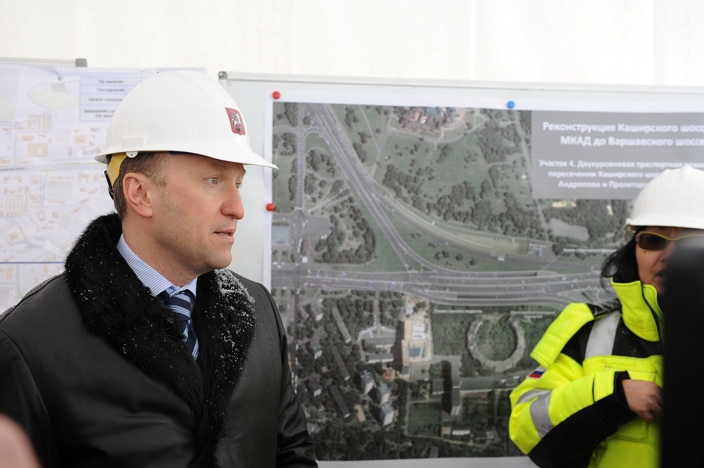 Строительство двухуровневой развязки на пересечении Каширского шоссе с проспектом Андропова и Пролетарским проспектом. А. Бочкарев, П. Аксенов
