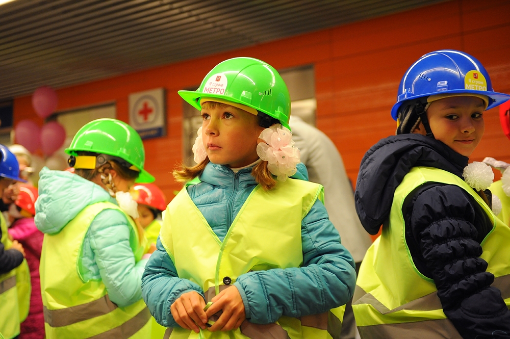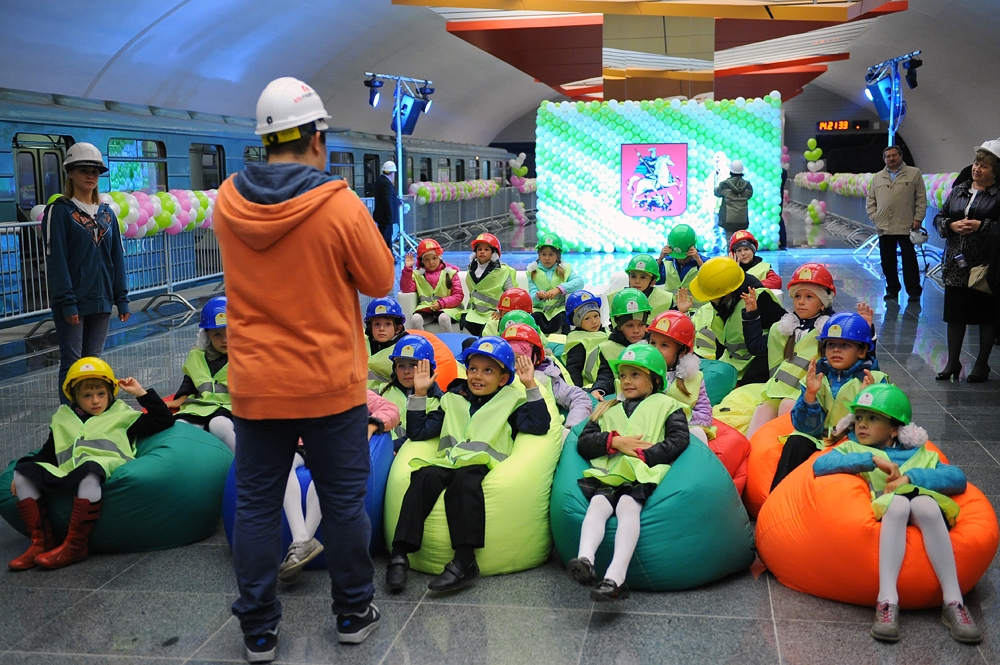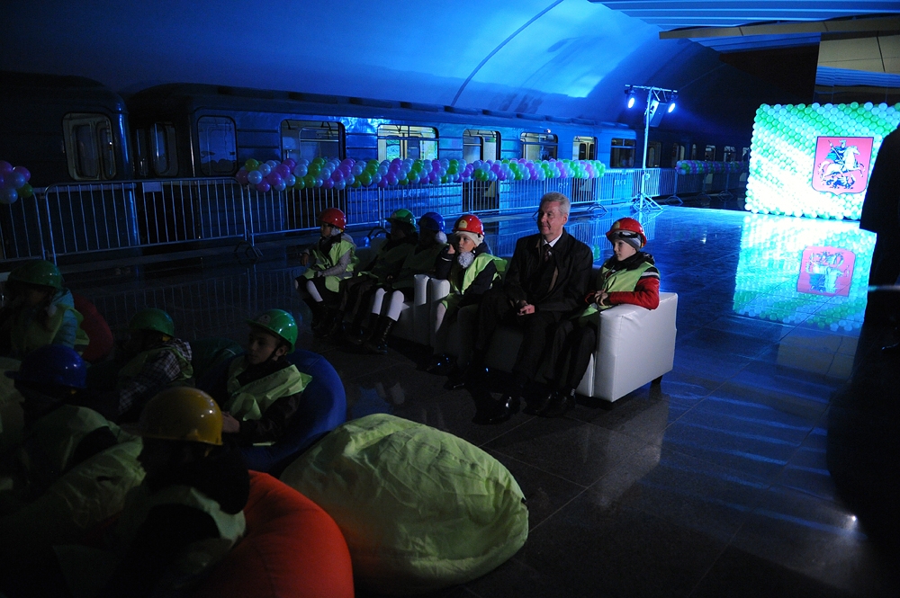 Открытый урок для 2Б класса школы 1359 на станции «Лермонтовский проспект» Таганско-Краснопресненской линии. С. Собянин, М. Хуснуллин, А. Бочкарев, И. Беседин