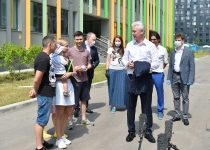 8 июл. 2020 г. Осмотр нового детского сада на Волоколамском шоссе, д. 71, корп. 3 в составе строящейся школы № 727. С. Собянин