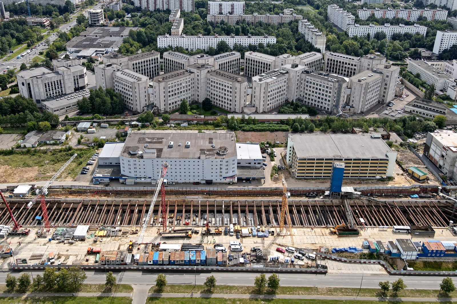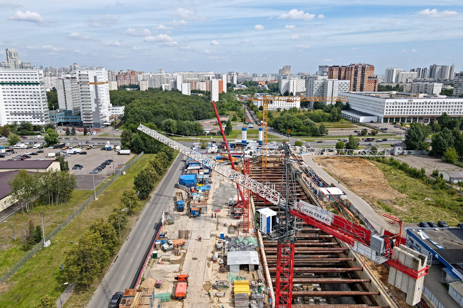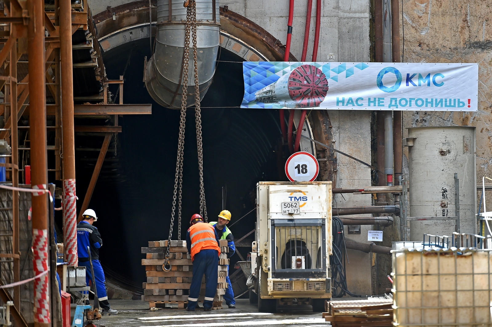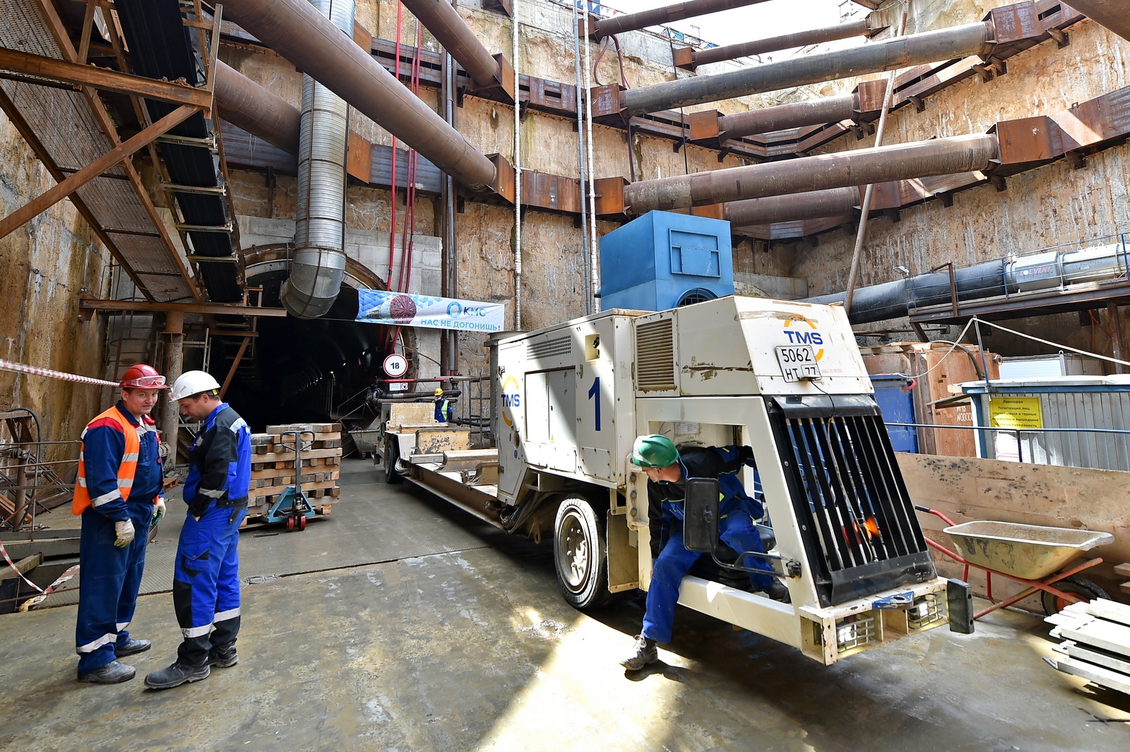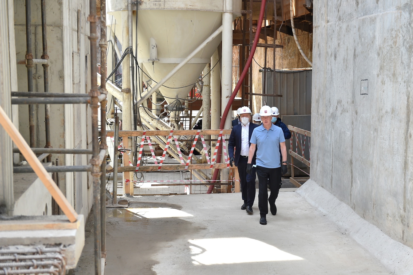 Осмотр хода строительства станции метро «Университет Дружбы Народов» Коммунарской линии. С. Собянин, А. Бочкарев. Фото stroi.mos.ru