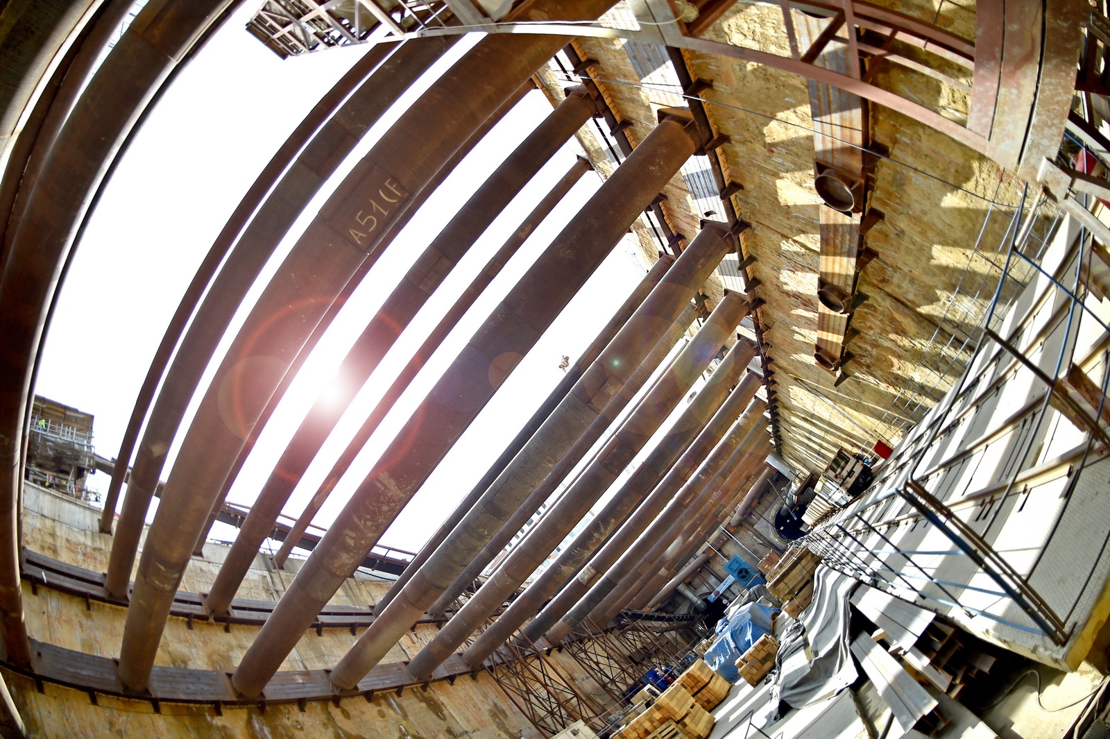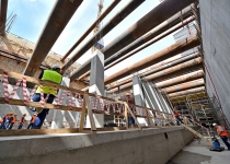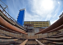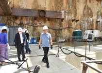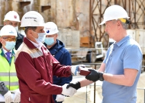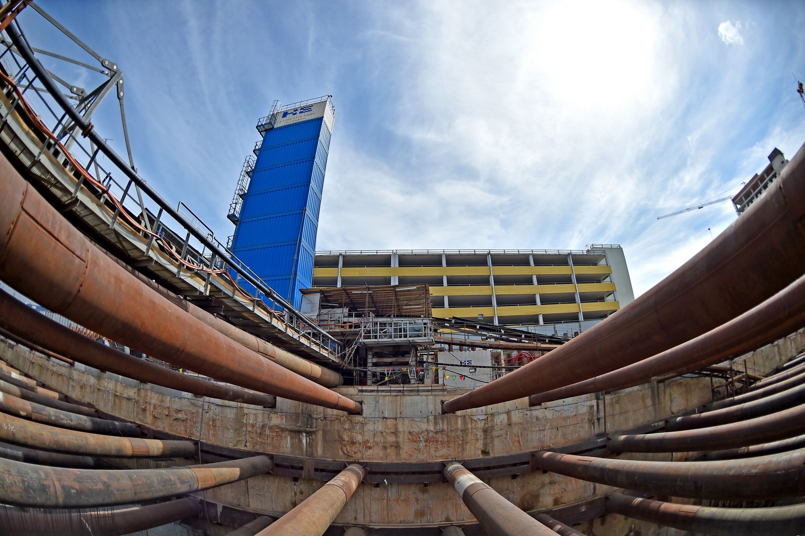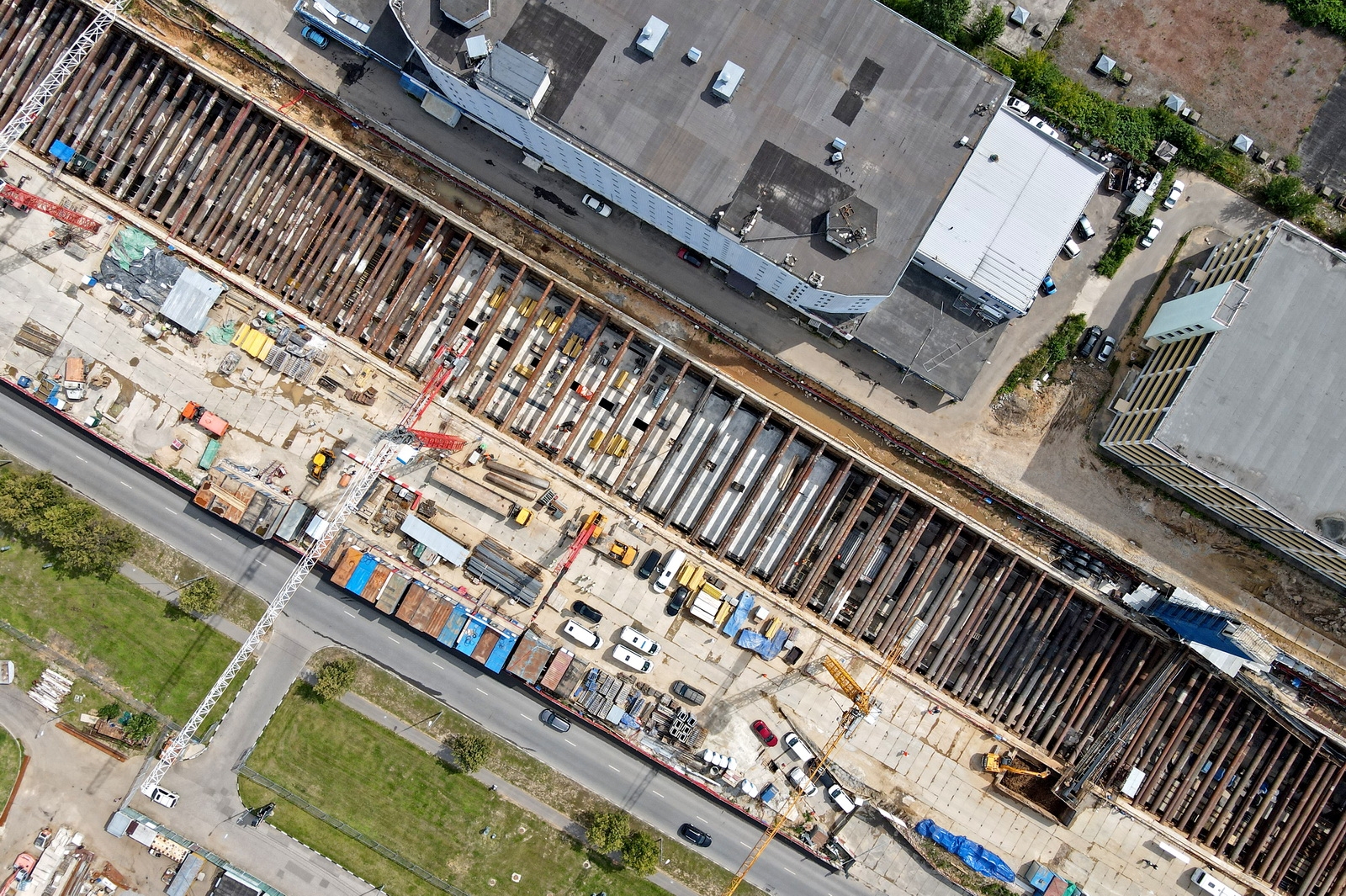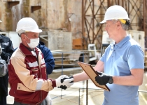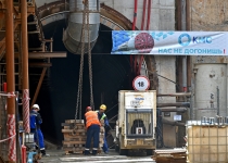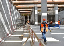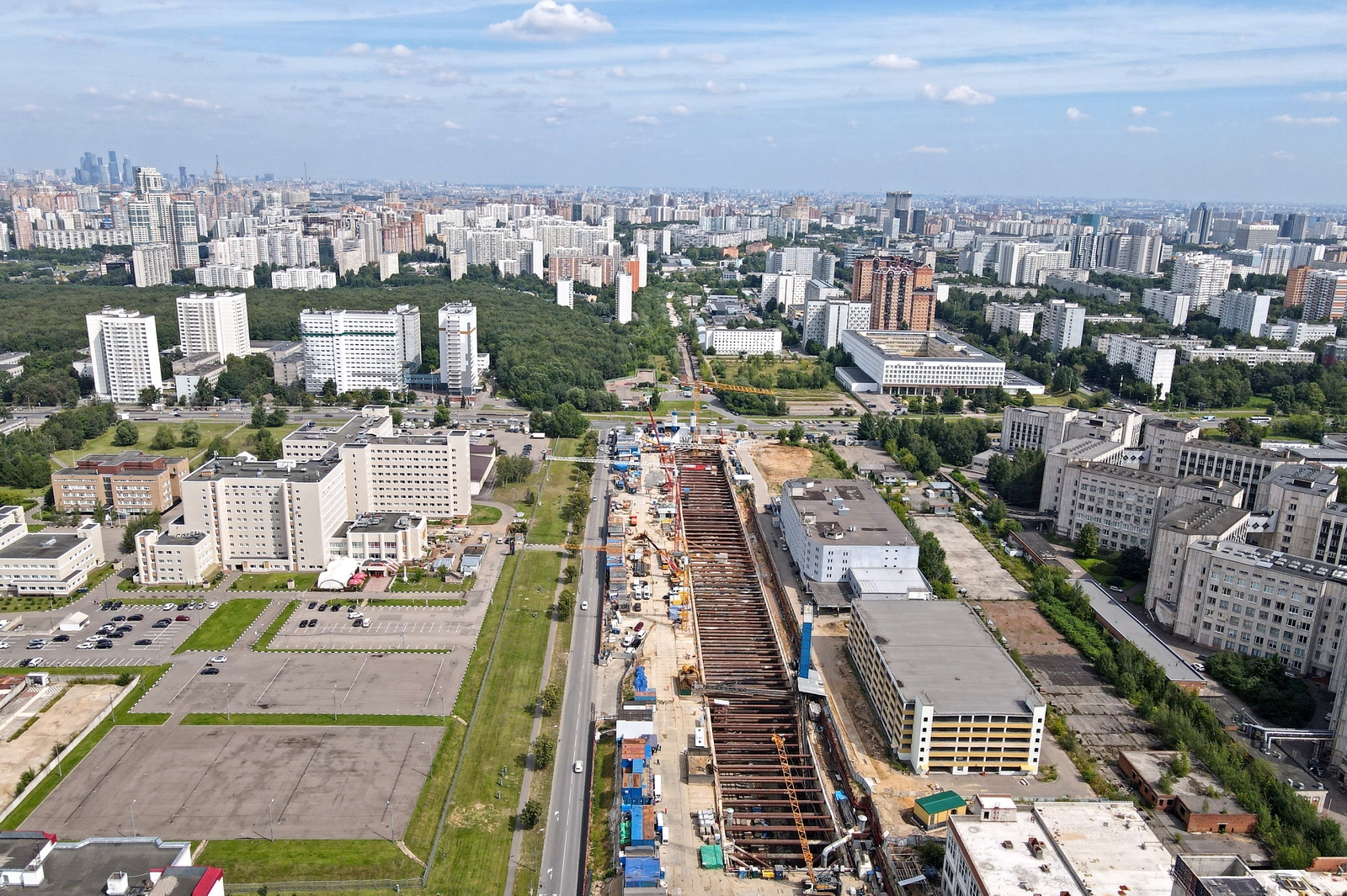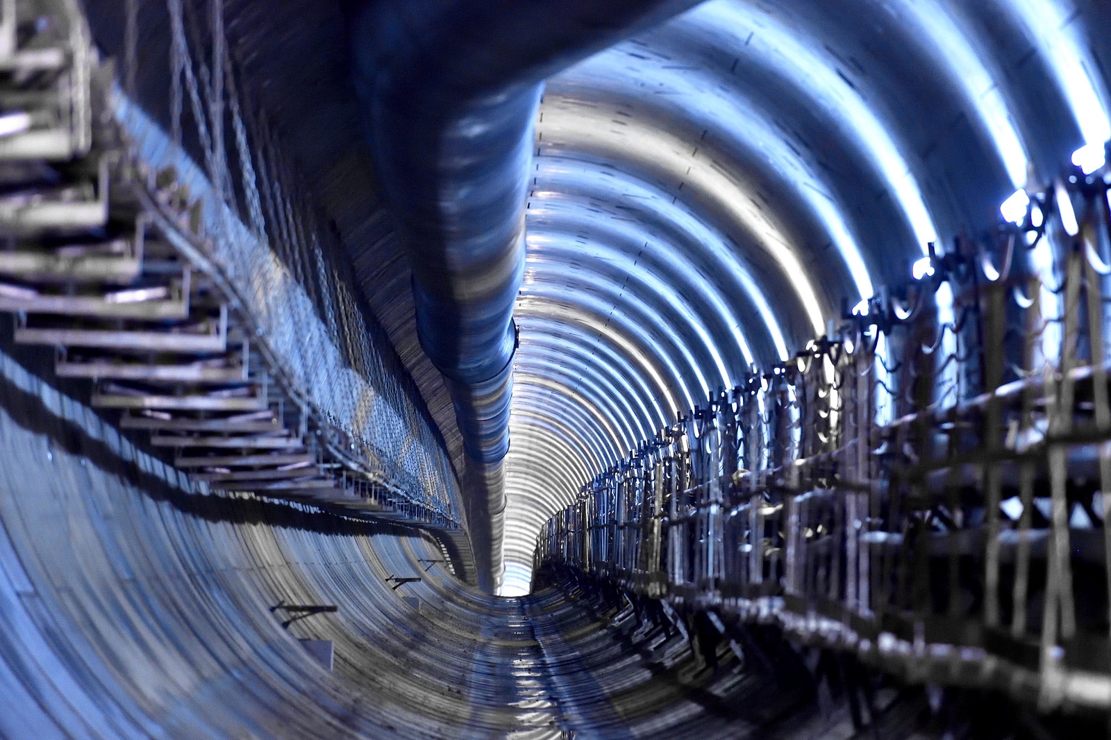 Осмотр хода строительства станции метро «Университет Дружбы Народов» Коммунарской линии. С. Собянин, А. Бочкарев. Фото stroi.mos.ru