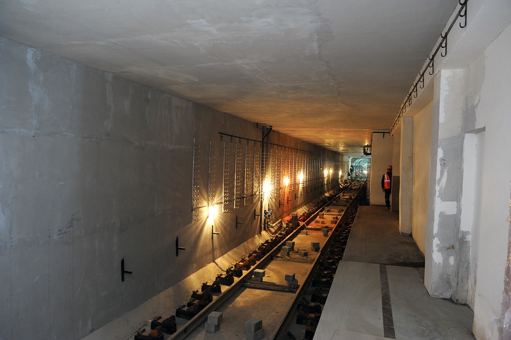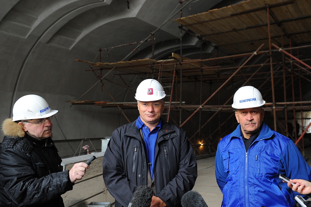 17 окт. 2013 г. Осмотр хода строительства участка метрополитена от станции «Юго-Западная» до станции «Саларьево». С. Собянин, М. Хуснуллин 26 фото