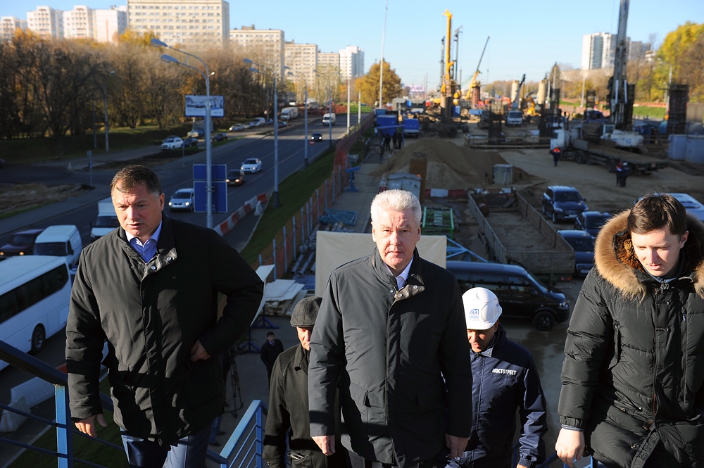 17 окт. 2013 г. Осмотр хода строительства участка метрополитена от станции «Юго-Западная» до станции «Саларьево». С. Собянин, М. Хуснуллин 26 фото