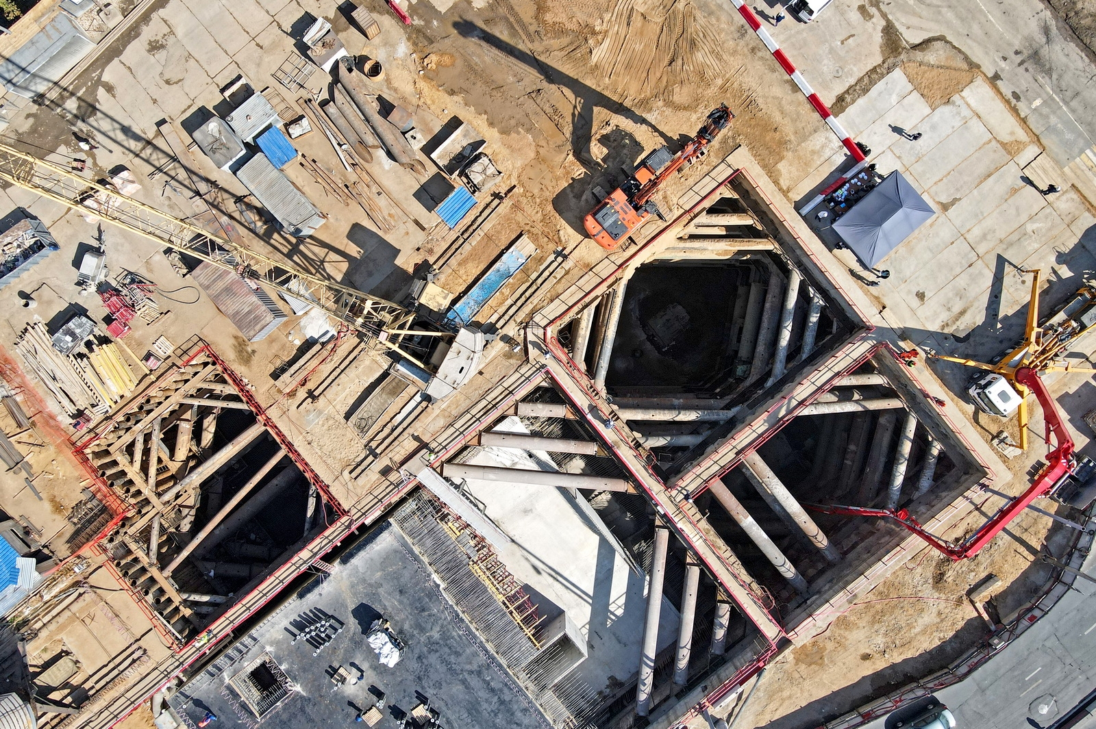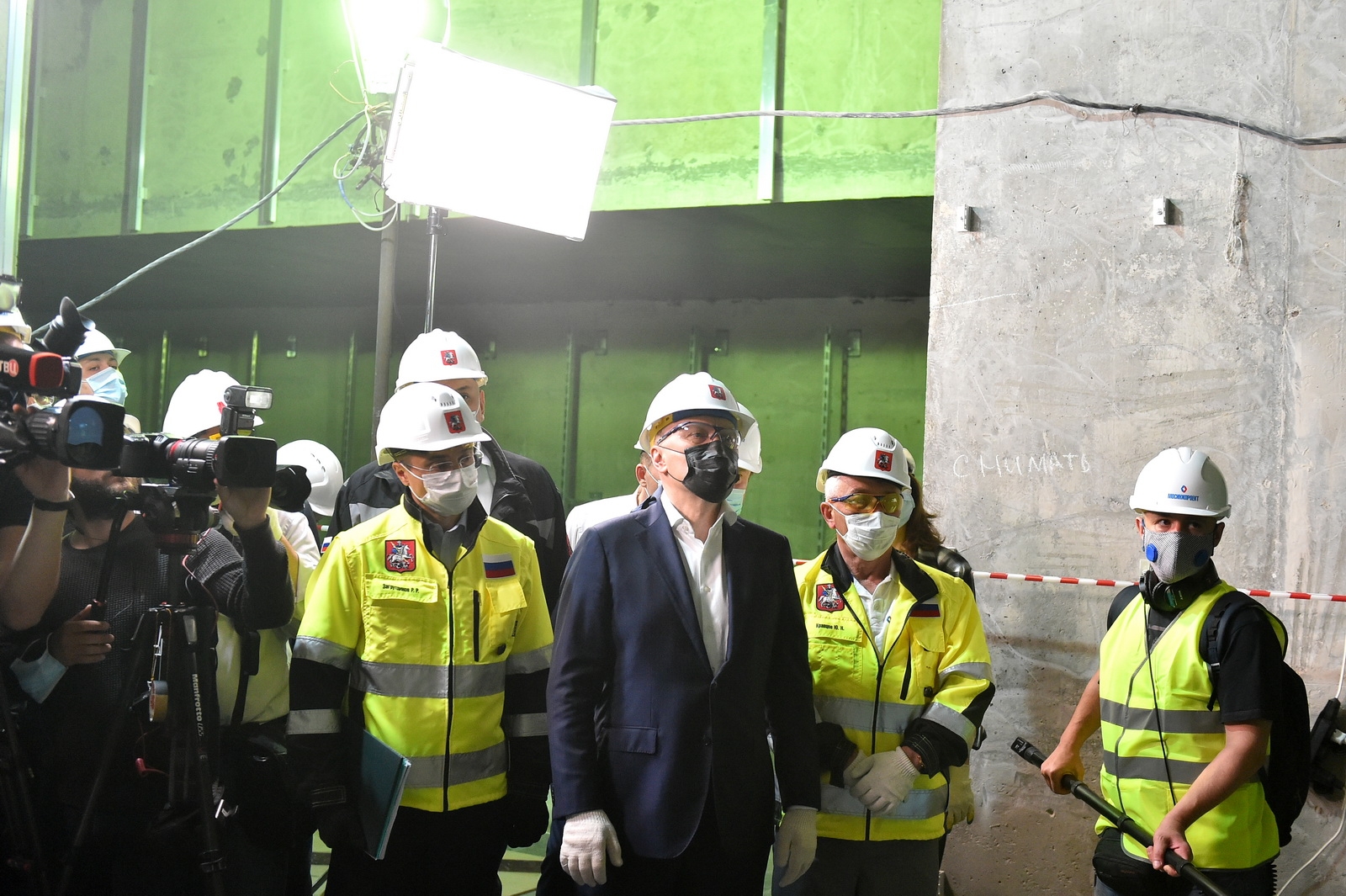 Строительство станции БКЛ «Народное Ополчение» (ранее «Карамышевская»). С. Собянин, А. Бочкарёв