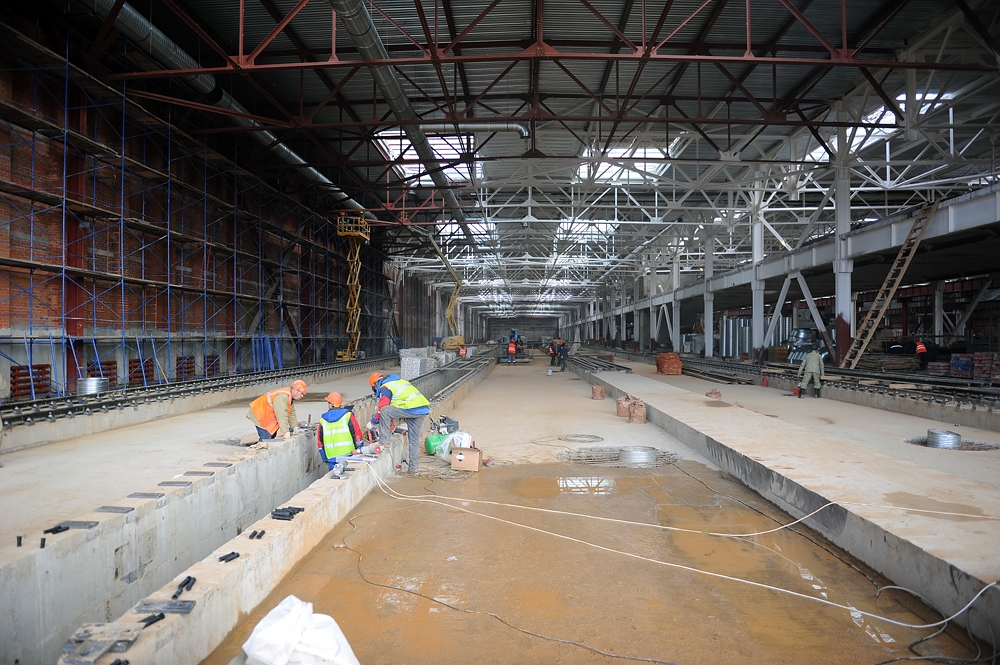 12 окт. 2013 г. Осмотр хода строительства электродепо "Братеево" московского метрополитена. М. Хуснуллин, Г. Смолеевский 21 фото