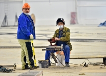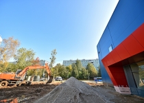 15 сент. 2020 г. Осмотр хода строительства ФОКа в районе Покровское-Стрешнево. С. Собянин, А. Бочкарёв 25 фото