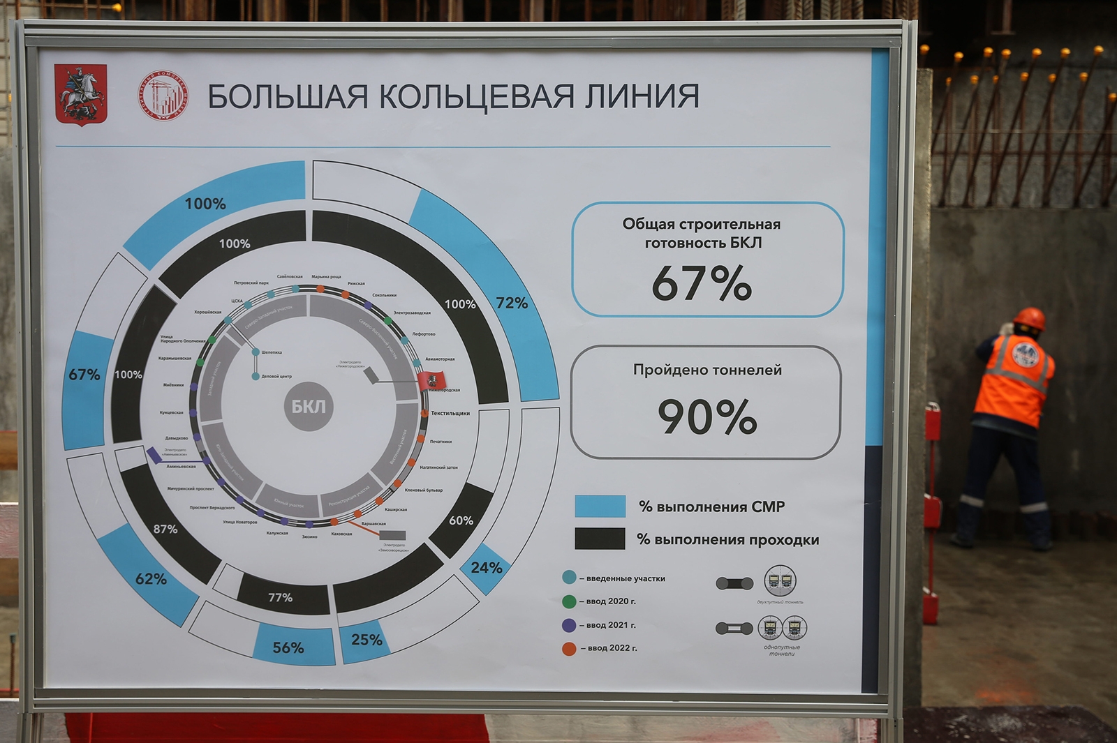 Строительство станции метро «Текстильщики» БКЛ. С. Собянин, А. Бочкарёв. Фото: Сергей Михеев, Российская газета Темы в материале: Метро 23 окт. 2020 г. 16:40 Теги БКЛ (Большая кольцевая линия метро) Текстильщики Копировать ссылку Скрыть ссылку Другие материалы по теме 28 окт. 2020 г. Собянин осмотрел строящуюся станцию «Текстильщики» БКЛ метро 29 окт. 2020 г. Завершена первая проходка двухпутного тоннеля на востоке БКЛ метро – заммэра 26 окт. 2020 г. На станции БКЛ метро «Текстильщики» появится «ткацкий станок» 26 окт. 2020 г. Станция «Текстильщики» БКЛ метро: минималистичный «ткацкий станок» и крупный ТПУ 24 окт. 2020 г. Бочкарёв: станцию «Сокольники» БКЛ метро построят до конца 2021 года 23 окт. 2020 г. Собянин: станция метро «Текстильщики» на БКЛ готова почти на 50% 21 окт. 2020 г. Открытие третьего участка проспекта Генерала Дорохова. С. Собянин, А. Бочкарёв. Фото: Сергей Михеев, Российская газета 16 фото 20 окт. 2020 г. Открытие станции Долгопрудная МЦД-1 после реконструкции. С. Собянин, О. Белозёров. Фото: Сергей Михеев, Российская газета 20 фото