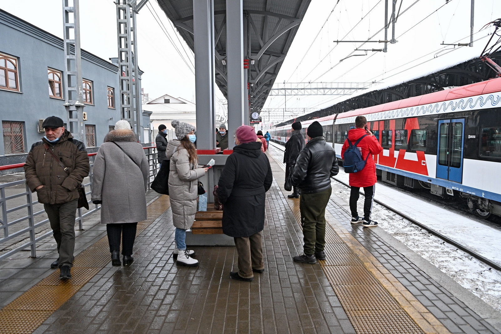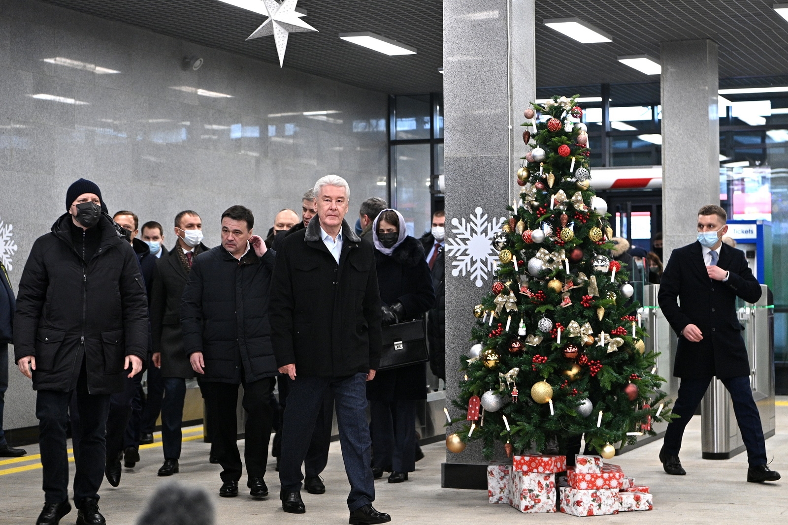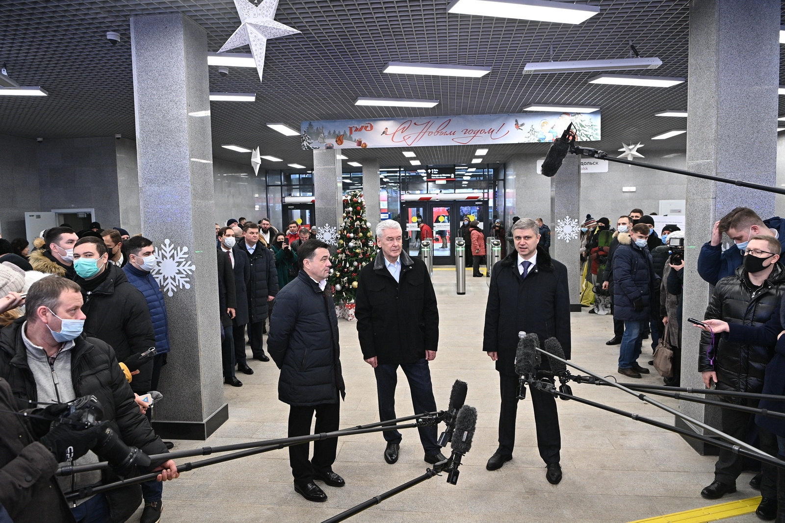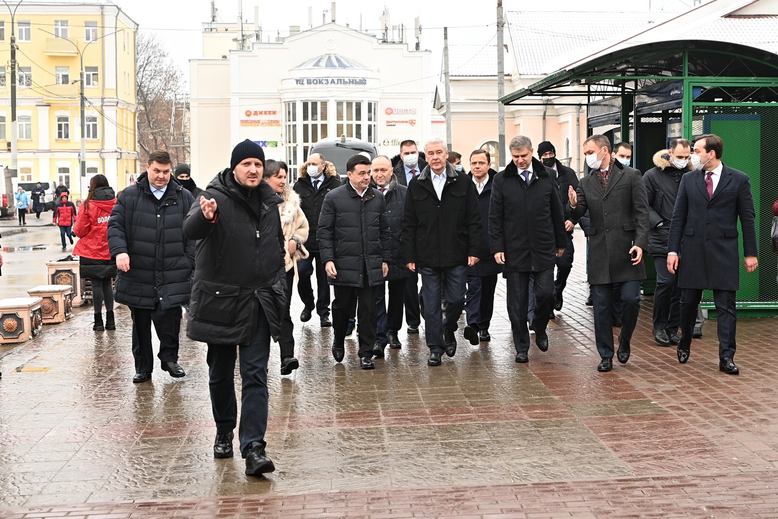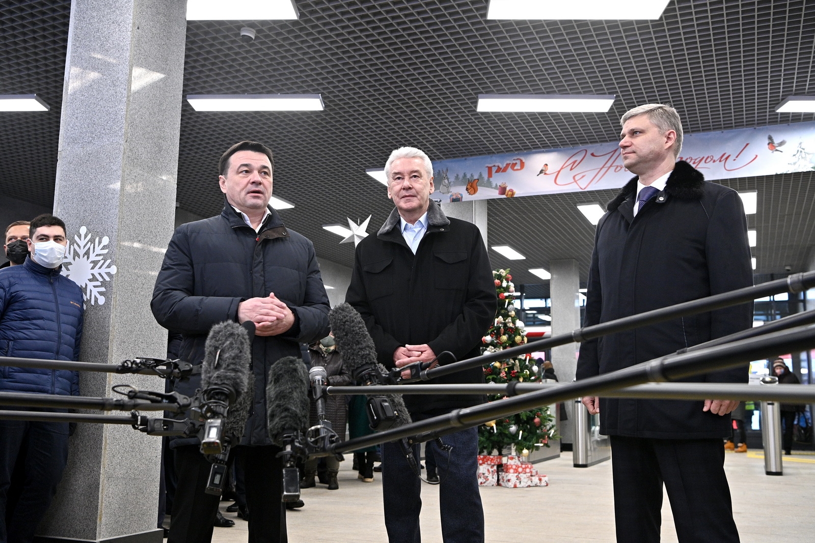Открытие после реконструкции станции Подольск МЦД-2. С. Собянин, О. Белозёров, А. Воробьёв, А. Бочкарёв