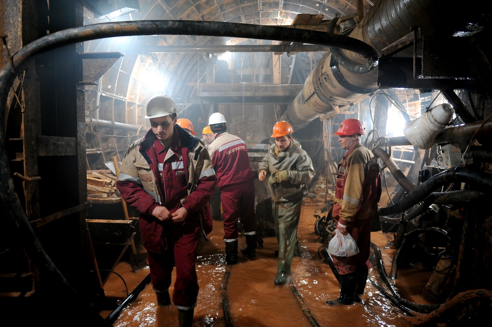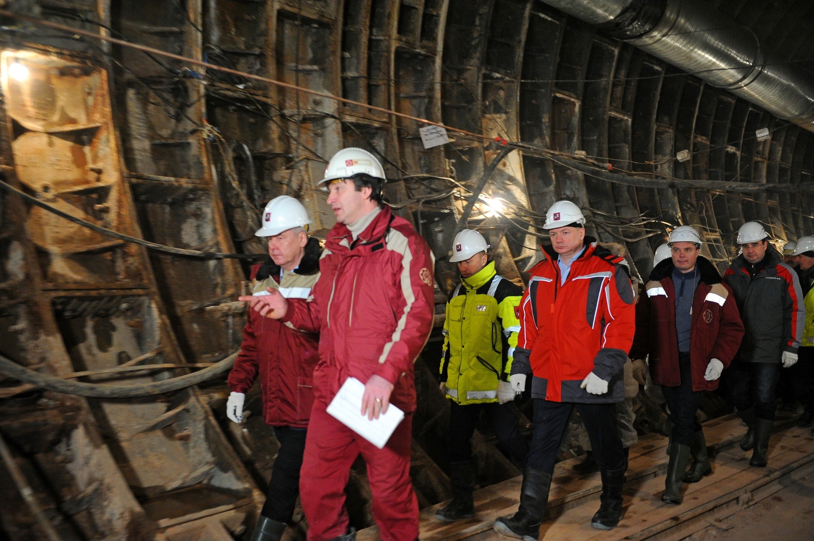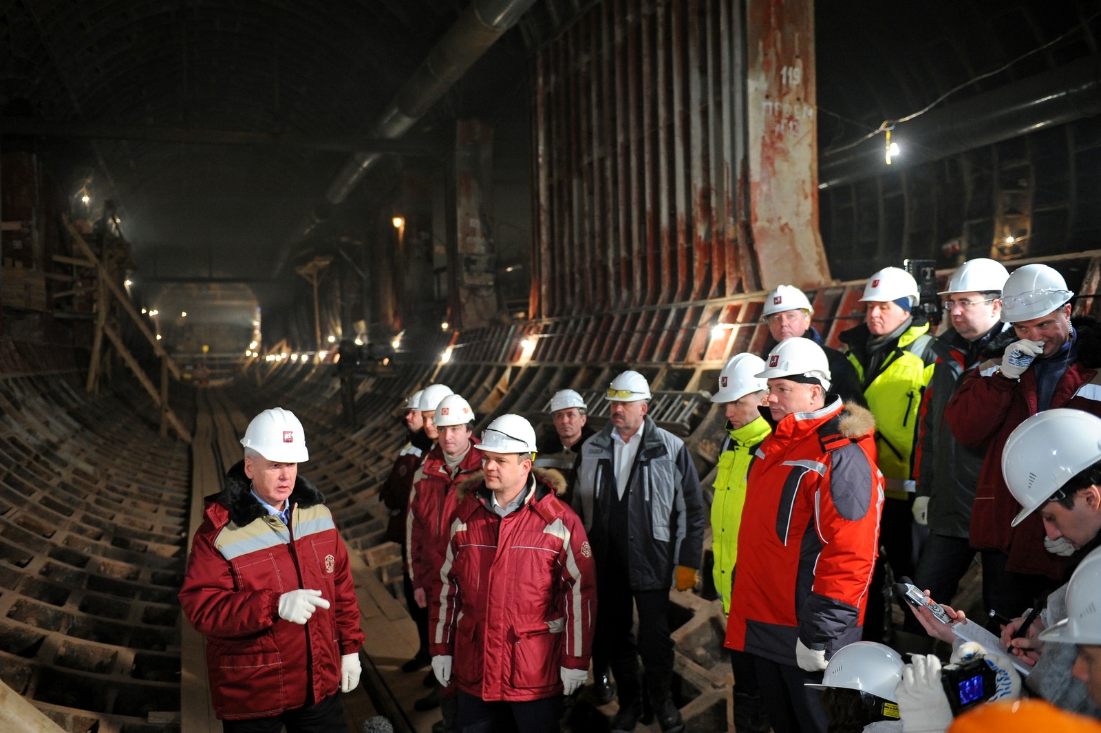 3 февр. 2014 г. Осмотр строящейся станции метро «Петровско-Разумовская» Люблинско-Дмитровской линии. С. Собянин, М. Хуснуллин