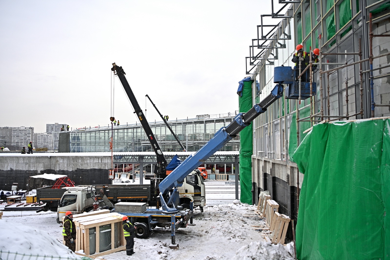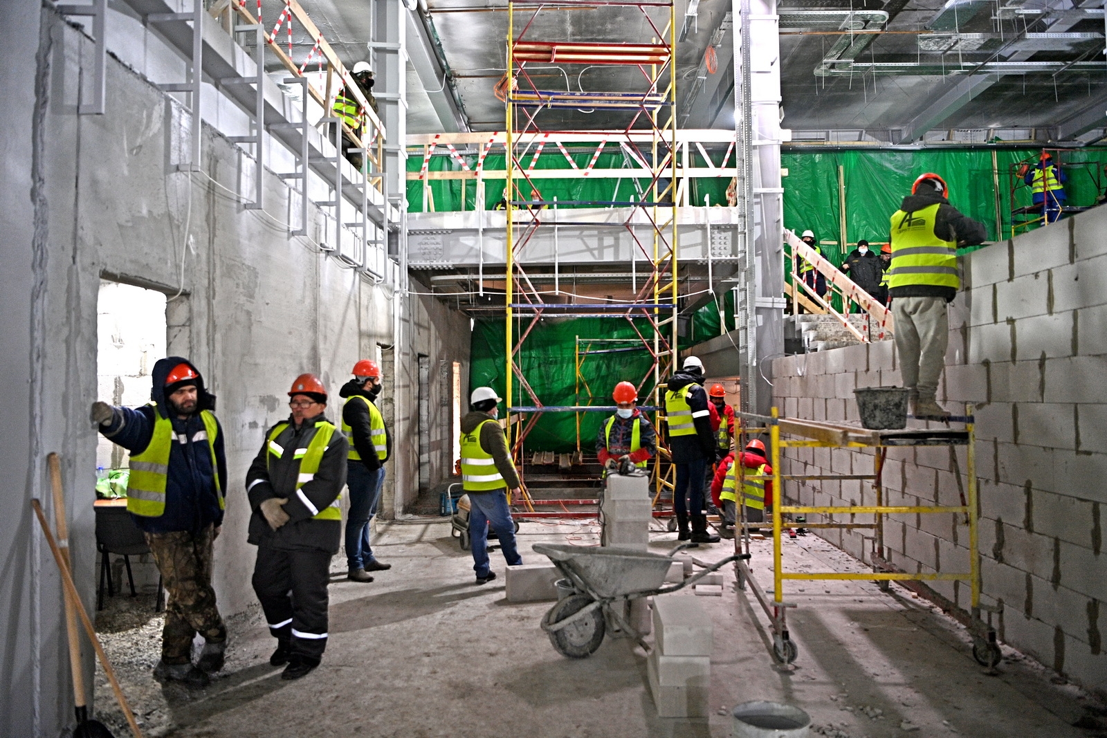 9 февр. 2021 г. Строительство нового корпуса школы № 2007 в районе Южное Бутово. С. Собянин, А. Бочкарёв 30 фото